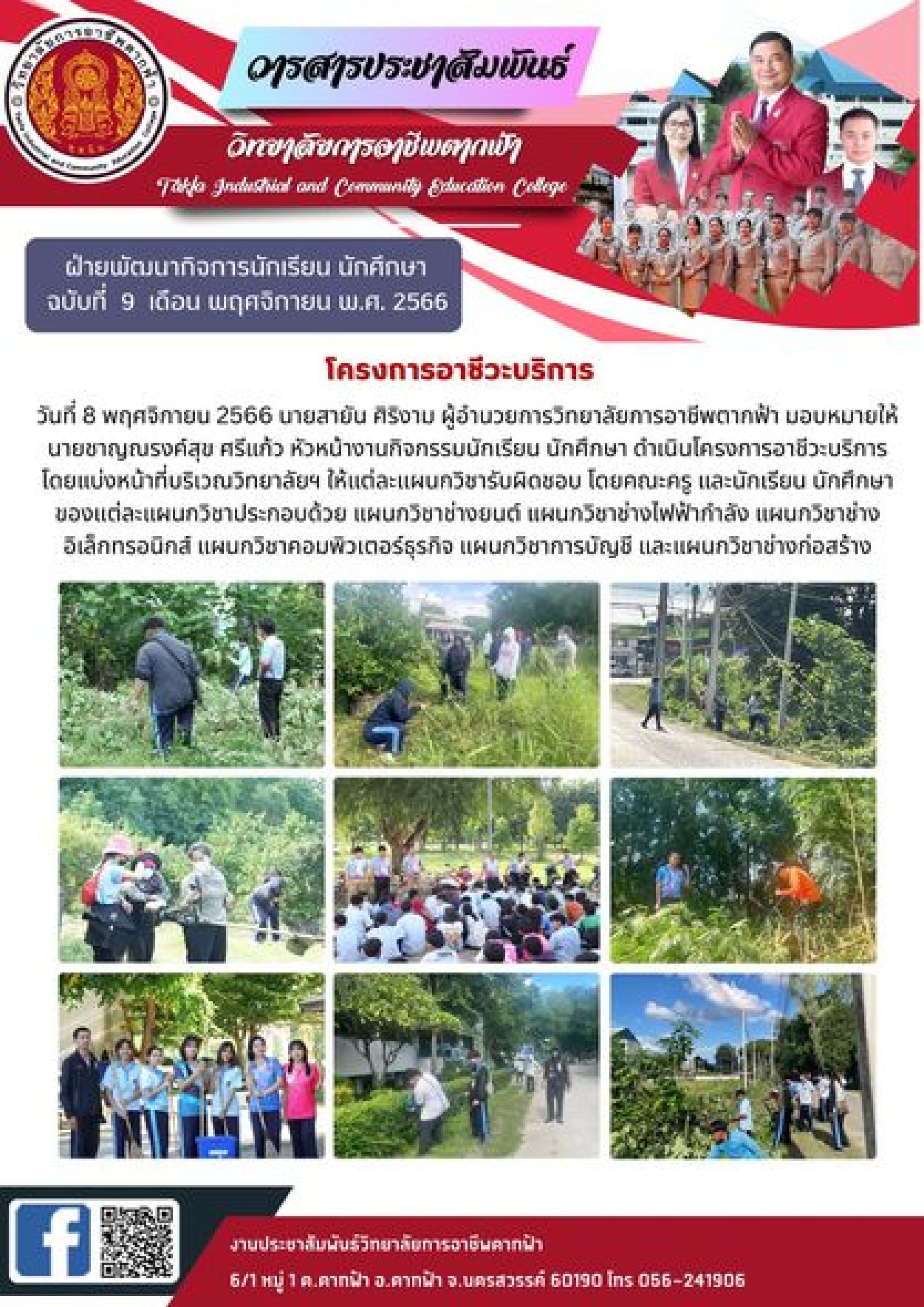 วารสารตากฟ้าประจำเดือนพฤศจิกายน 2566 ฉบับที่ 9 โครงการอาชีวะบริการ วันที่ 8 พฤศจิกายน 2566
