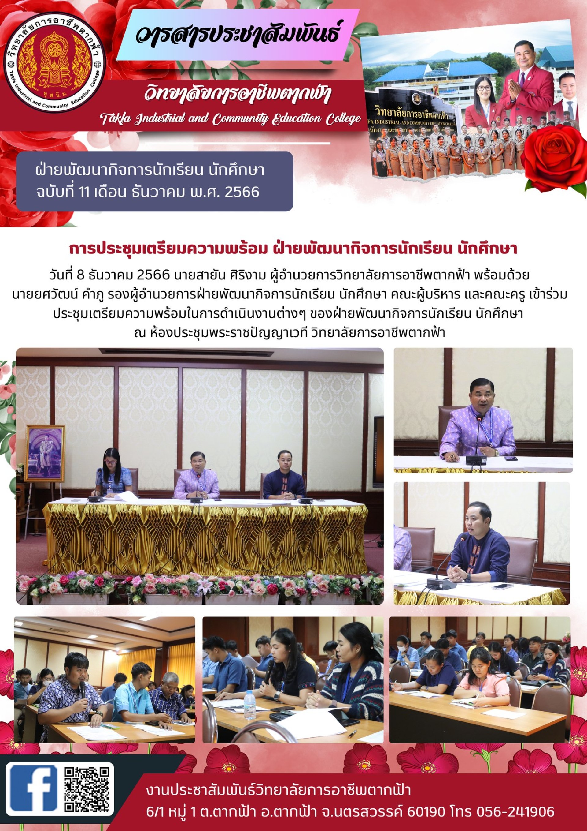 วารสารตากฟ้าประจำเดือนธันวาคม 2566 ฉบับที่ 11 การประชุมเตรียมความพร้อม ฝ่ายพัฒนากิจการนักเรียน นักศึกษา วันที่ 8 ธันวาคม 2566