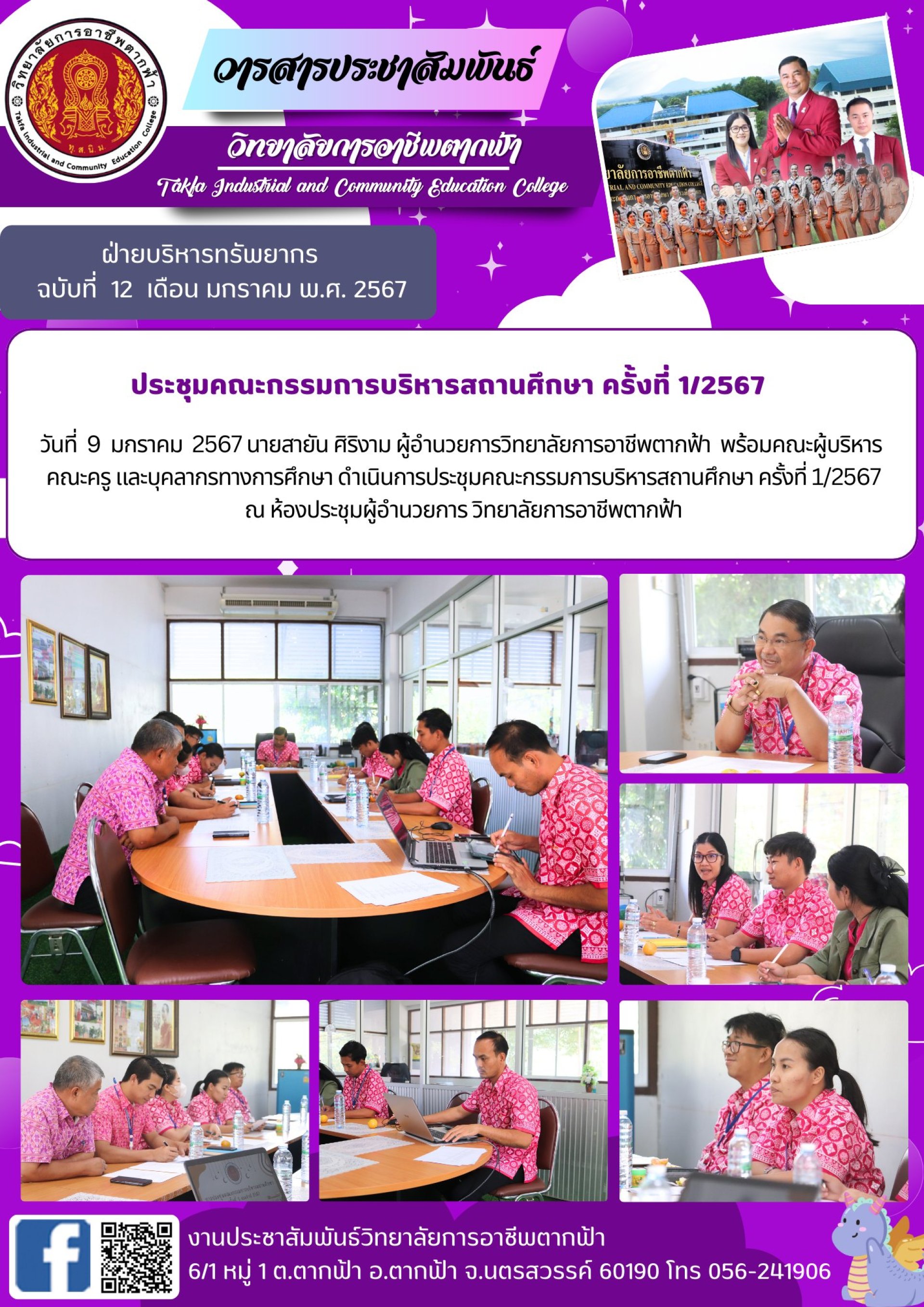 วารสารตากฟ้า ประจำเดือน มกราคม 2567 ฉบับที่ 12 ประชุมคณะกรรมการบริหารสถานศึกษา ครั้งที่ 1/2567