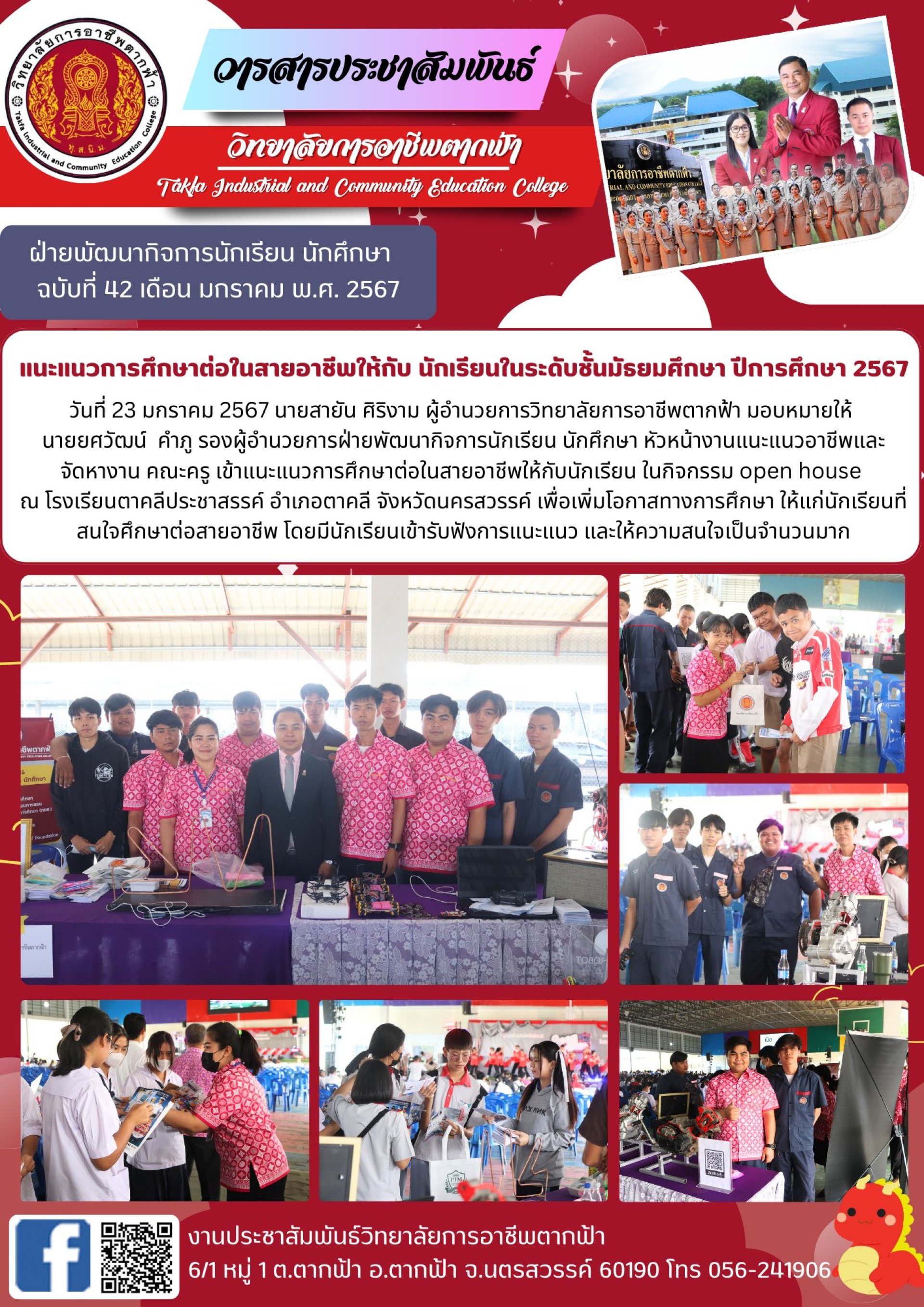 วารสารตากฟ้า ประจำเดือน มกราคม 2567 ฉบับที่ 42 แนะแนวการศึกษาต่อในสายอาชีพให้กับ นักเรียนในระดับชั้นมัธยมศึกษา ปีการศึกษา 2567