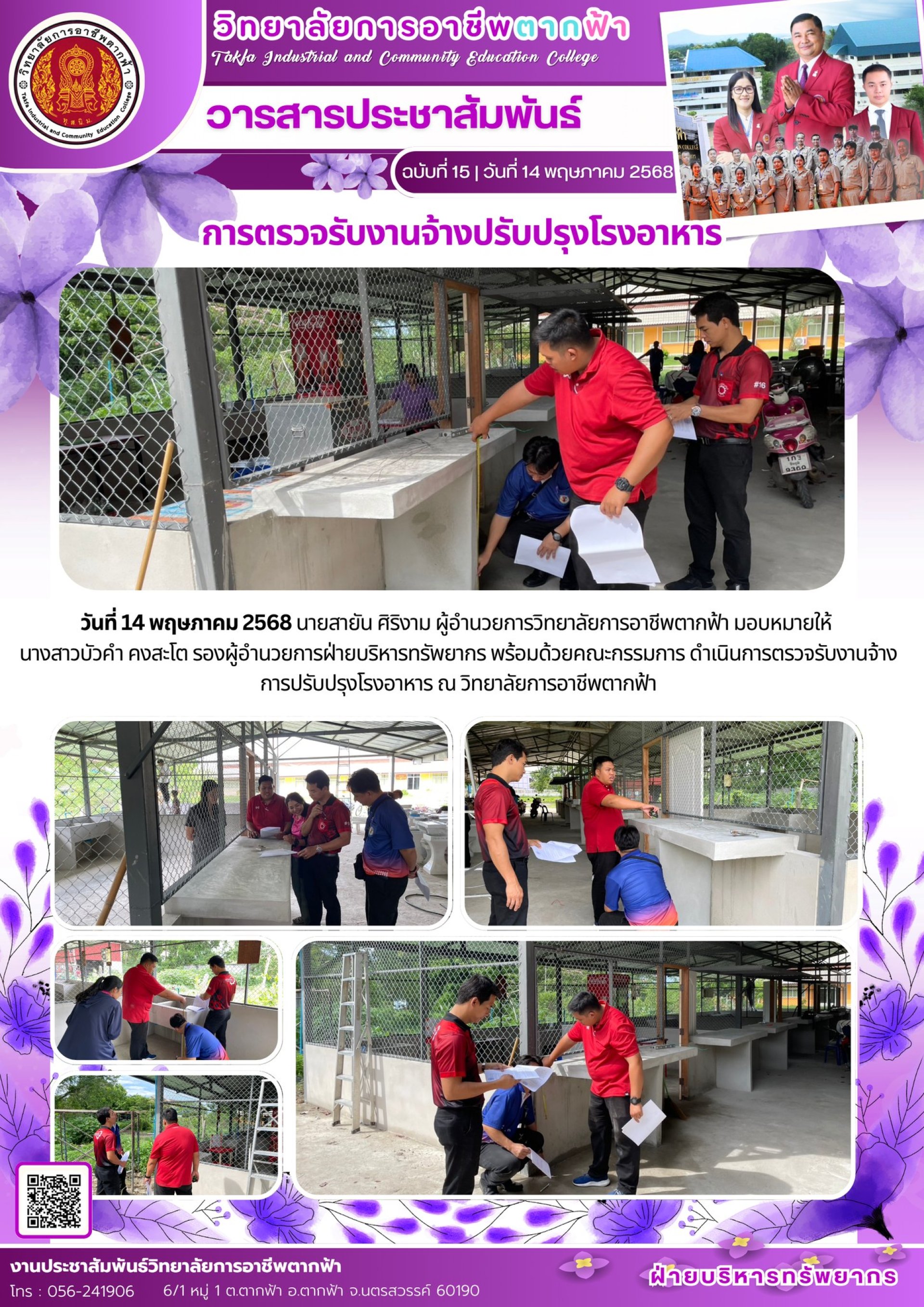 วารสารตากฟ้า ประจำเดือน พฤษภาคม 2568 ฉบับที่ 15 การตรวจรับงานจ้างปรับปรุงโรงอาหาร
