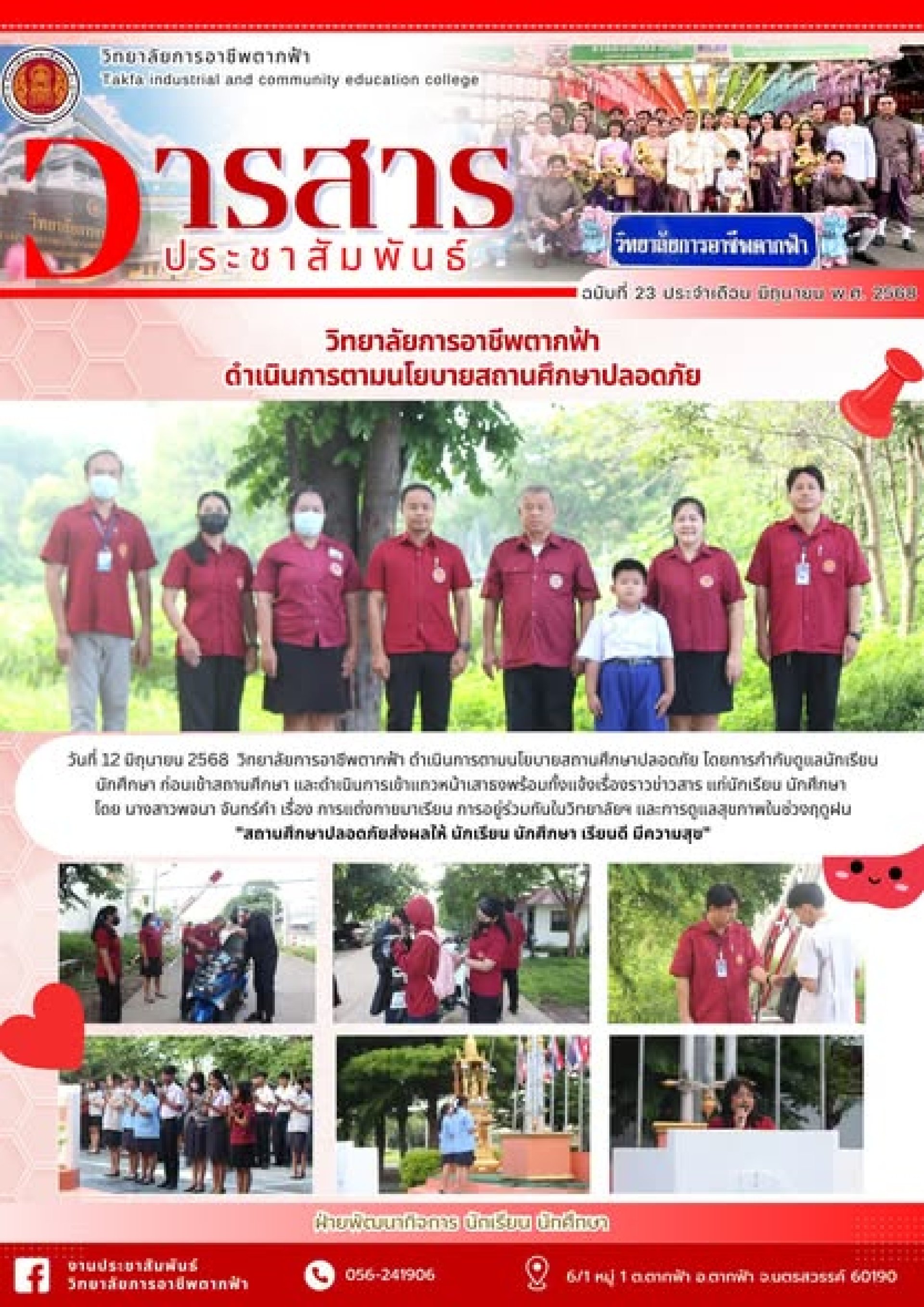 วารสารตากฟ้า ประจำเดือน มิถุนายน 2568 ฉบับที่ 23 วิทยาลัยการอาชีพตากฟ้า ดำเนินการตามนโยบายสถานศึกษาปลอดภัย
