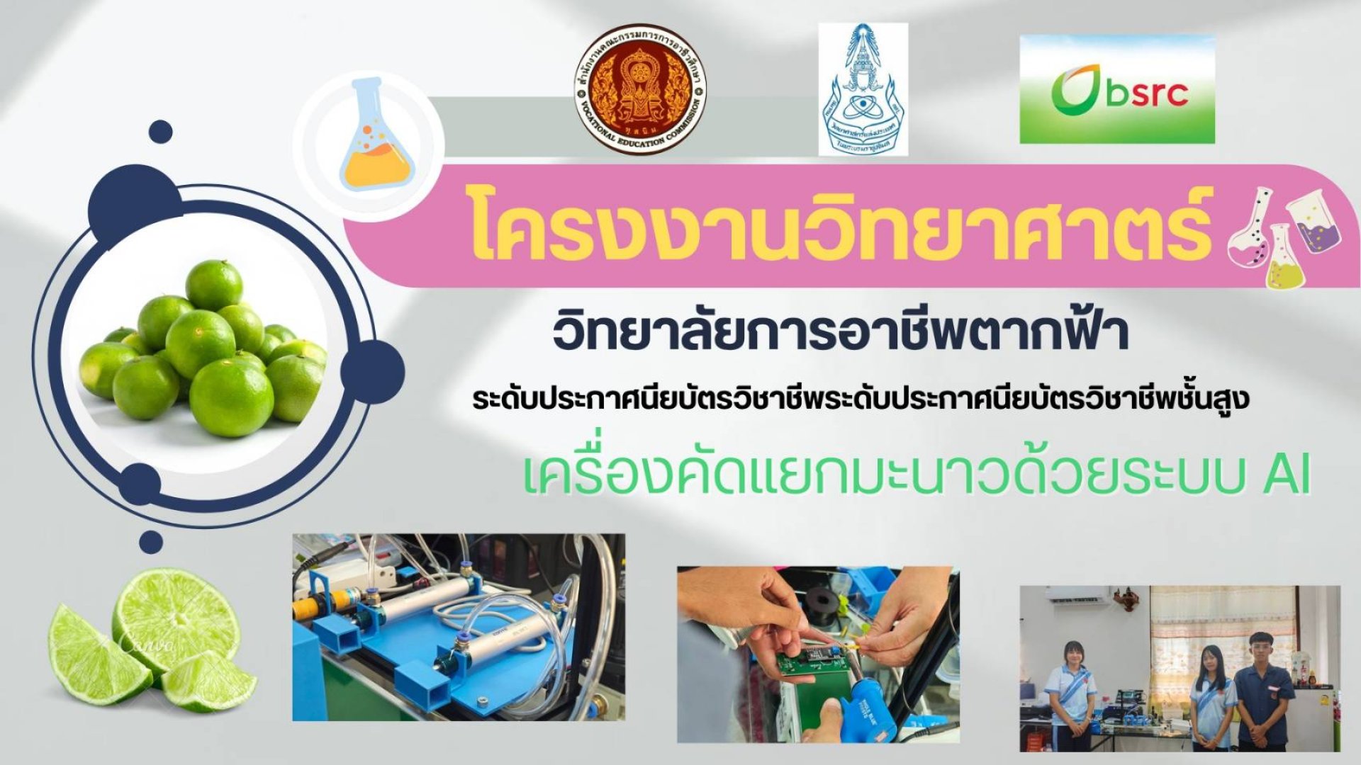 ประชาสัมพันธ์ โครงงานวิทยาศาสตร์อาชีวศึกษา ประจำปีพุทธศักราช 2568 ระดับประกาศนียบัตรวิชาชีพชั้นสูง (ปวส.) เรื่อง เครื่องคัดแยกมะนาวด้วยระบบ AI