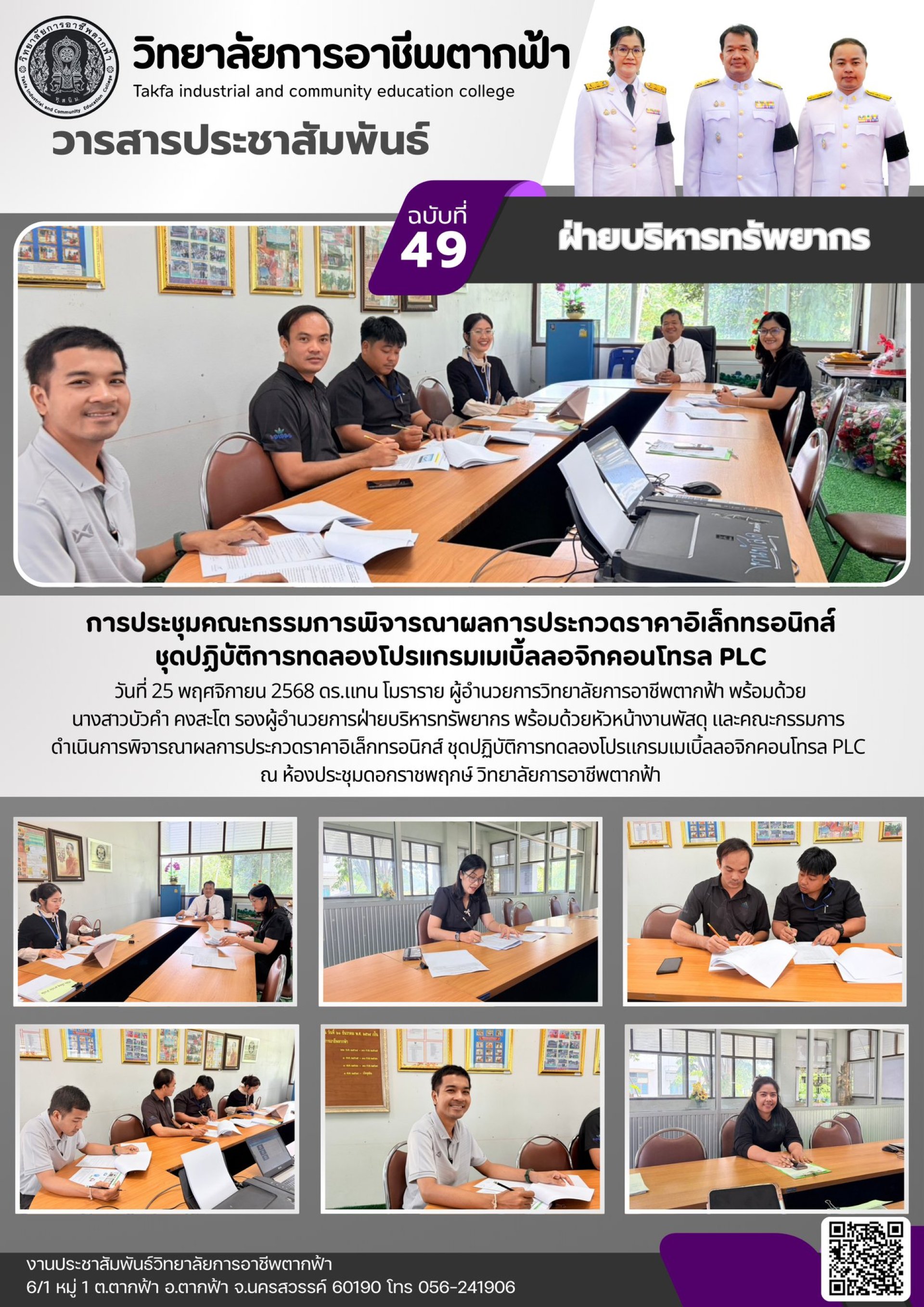 วารสารตากฟ้า ประจำเดือน พฤศจิกายน 2568 ฉบับที่ 49 การประชุมคณะกรรมการพิจารณาผลการประกวดราคาอิเล็กทรอนิกส์ ชุดปฏิบัติการทดลองโปรแกรมเมเบิ้ลลอจิกคอนโทรล PLC