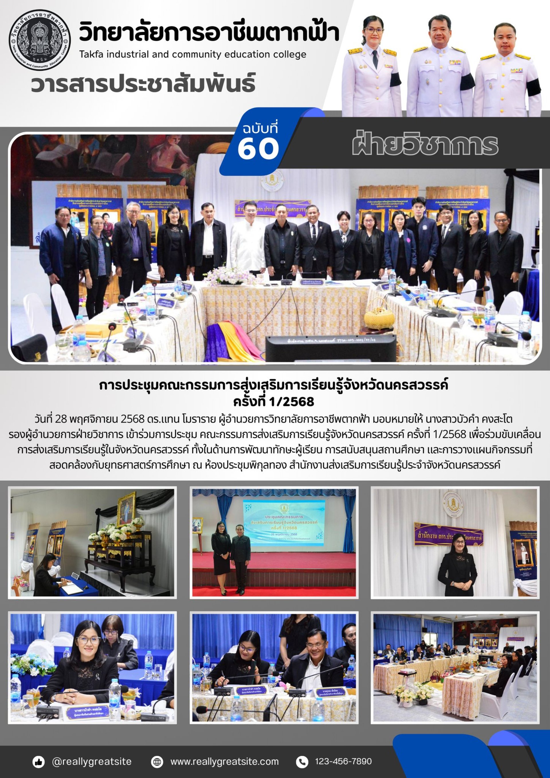 วารสารตากฟ้า ประจำเดือน พฤศจิกายน 2568 ฉบับที่ 60 การประชุมคณะกรรมการส่งเสริมการเรียนรู้จังหวัดนครสวรรค์ ครั้งที่ 1/2568