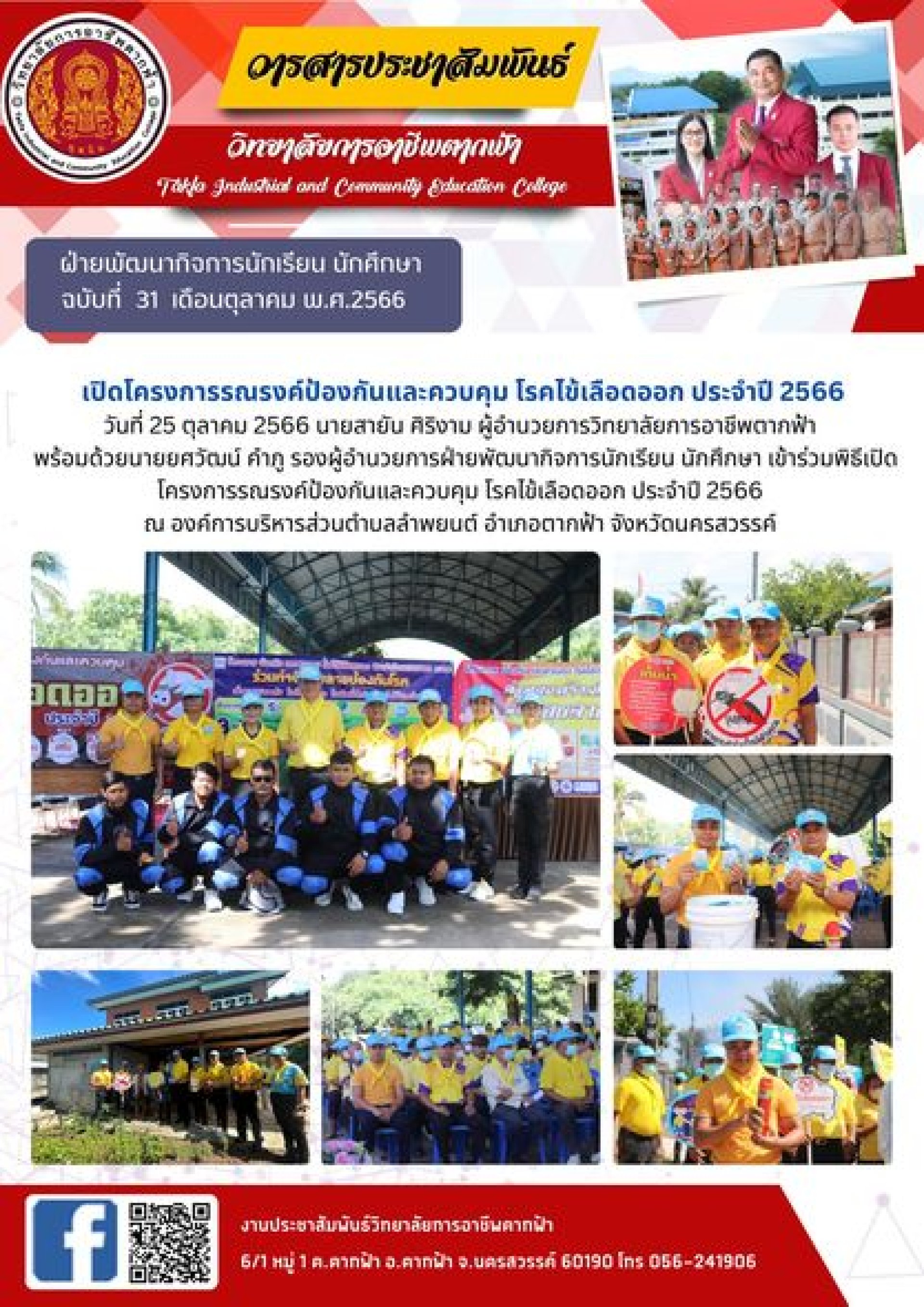 วารสารตากฟ้าประจำเดือนตุลาคม 2566 ฉบับที่ 31 เปิดโครงการรณรงค์ป้องกันและควบคุม โรคไข้เลือดออก ประจำปี 2566 วันที่ 25 ตุลาคม 2566