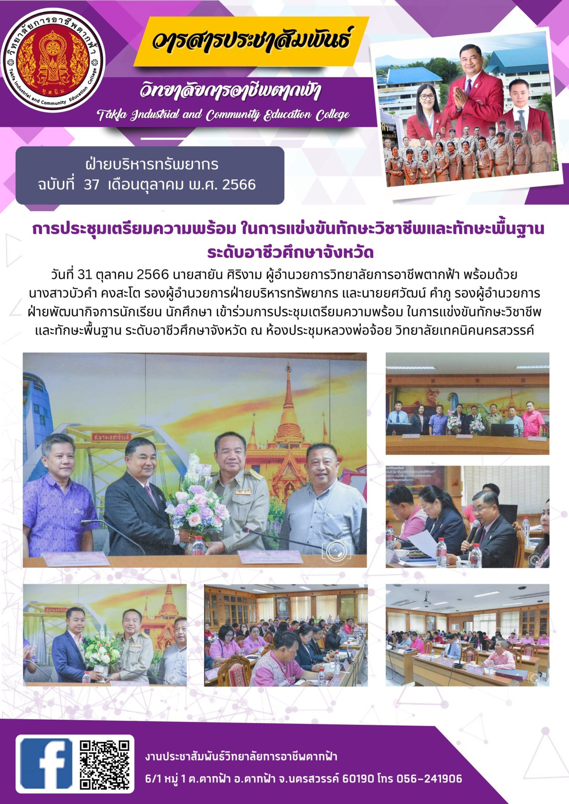 วารสารตากฟ้าประจำเดือนตุลาคม 2566 ฉบับที่ 37 การประชุมเตรียมความพร้อม ในการแข่งขันทักษะวิชาชีพและทักษะพื้นฐาน ระดับ อาชีวศึกษาจังหวัด วันที่ 31 ตุลาคม 2566