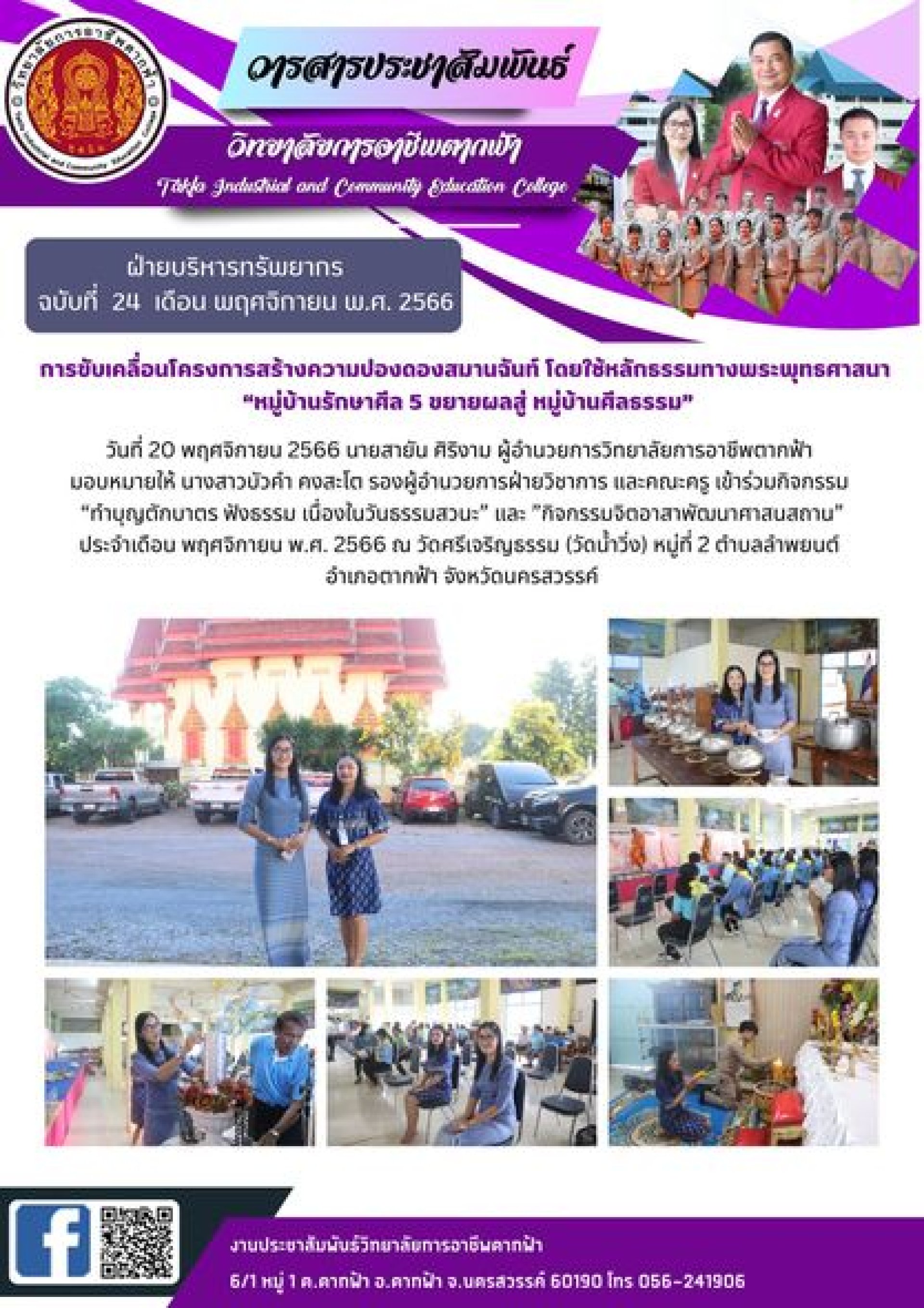 วารสารตากฟ้าประจำเดือนพฤศจิกายน 2566 ฉบับที่ 24 การขับเคลื่อนโครงการสร้างความปองดองสมานฉันท์ โดยใช้หลักธรรมทางพระพุทธศาสนา หมู่บ้านรักษาศีล 5 ขยายผลสู่ หมู่บ้านศีลธรรม
