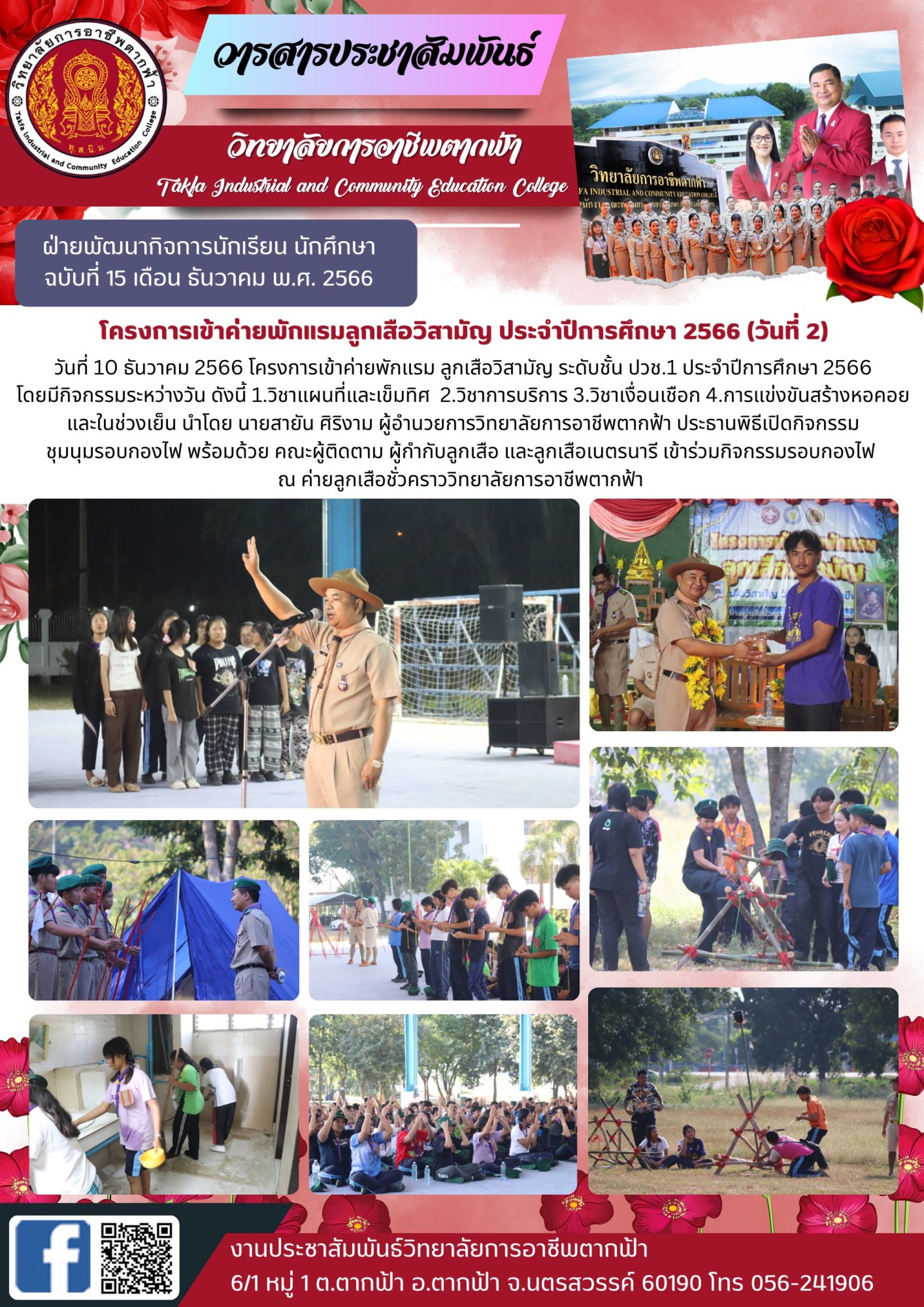 วารสารตากฟ้าประจำเดือนธันวาคม 2566 ฉบับที่ 15 โครงการเข้าค่ายพักแรมลูกเสือวิสามัญ ประจำปีการศึกษา 2566 (วันที่ 2)