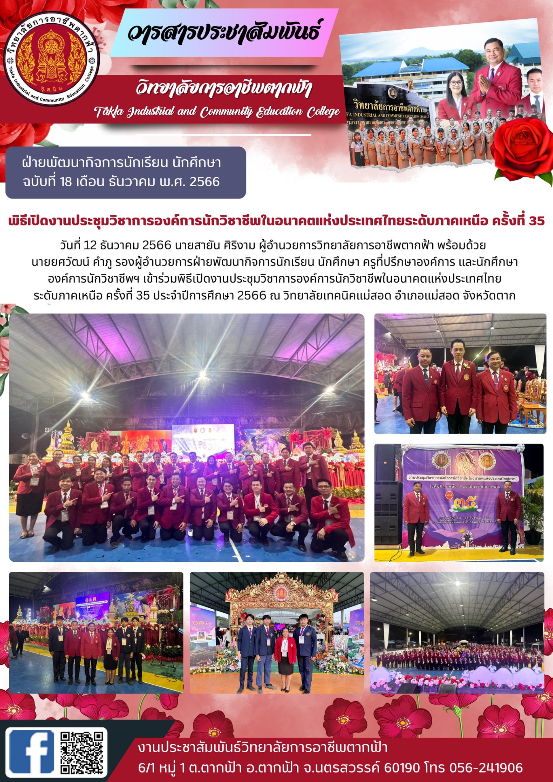 วารสารตากฟ้าประจำเดือนธันวาคม 2566 ฉบับที่ 18 พิธีเปิดงานประชุมวิชาการองค์การนักวิชาชีพในอนาคตแห่งประเทศไทยระดับภาคเหนือ ครั้งที่ 35