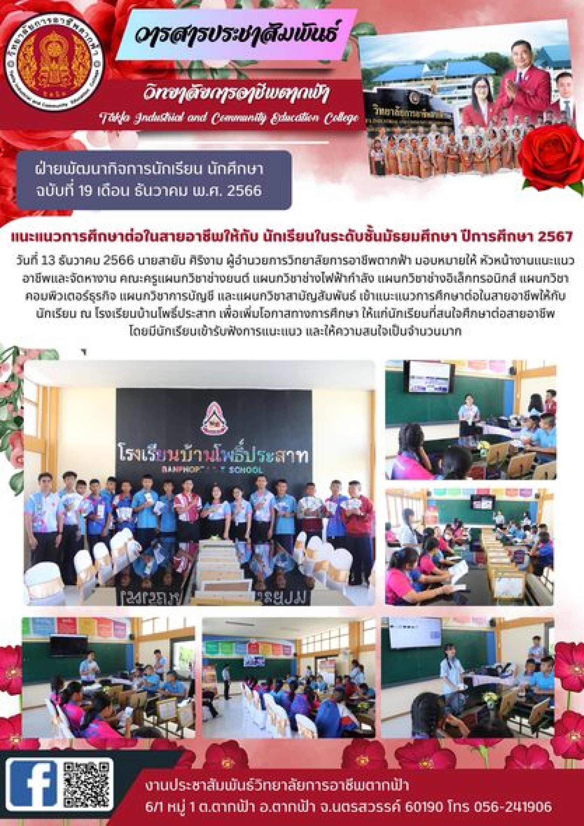 วารสารตากฟ้าประจำเดือนธันวาคม 2566 ฉบับที่ 19 แนะแนวการศึกษาต่อในสายอาชีพให้กับ นักเรียนในระดับชั้นมัธยมศึกษา ปีการศึกษา 2567