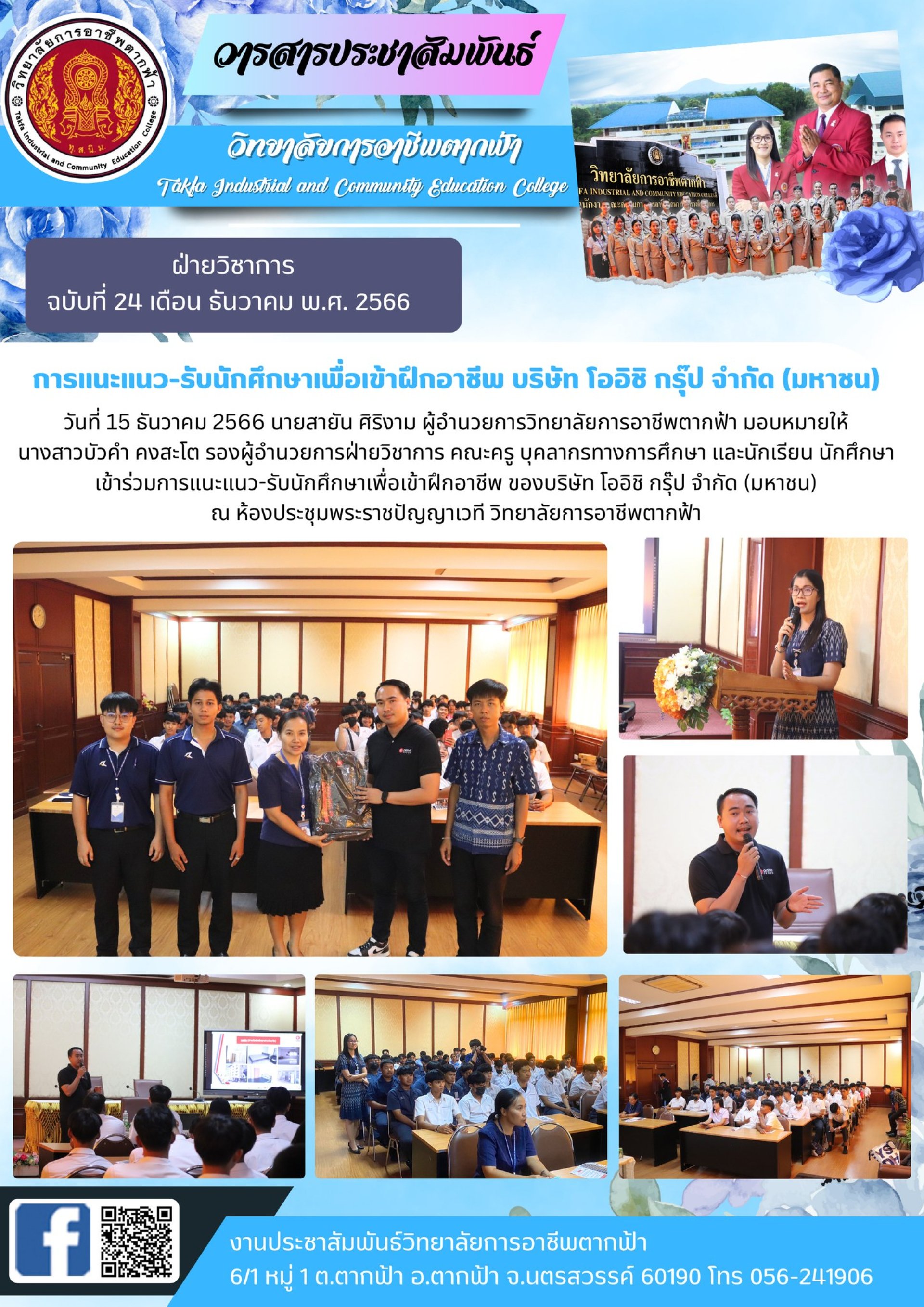 วารสารตากฟ้าประจำเดือนธันวาคม 2566 ฉบับที่ 24 การแนะแนว-รับนักศึกษาเพื่อเข้าฝึกอาชีพ บริษัท โออิชิ กรุ๊ป จํากัด (มหาชน)