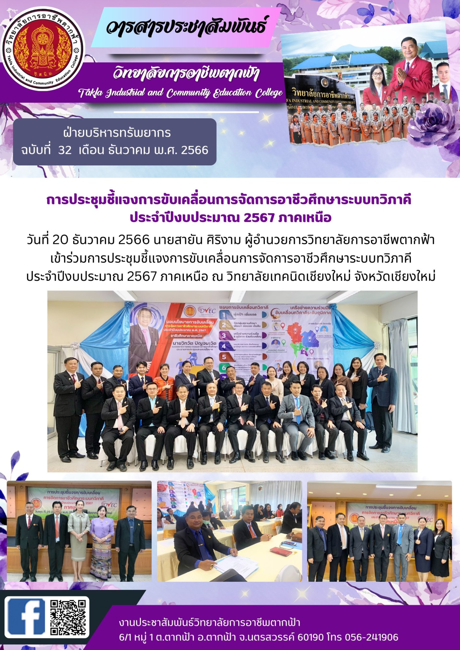 วารสารตากฟ้าประจำเดือนธันวาคม 2566 ฉบับที่ 32 การประชุมชี้แจงการขับเคลื่อนการจัดการอาชีวศึกษาระบบทวิภาคี ประจำปีงบประมาณ 2567 ภาคเหนือ