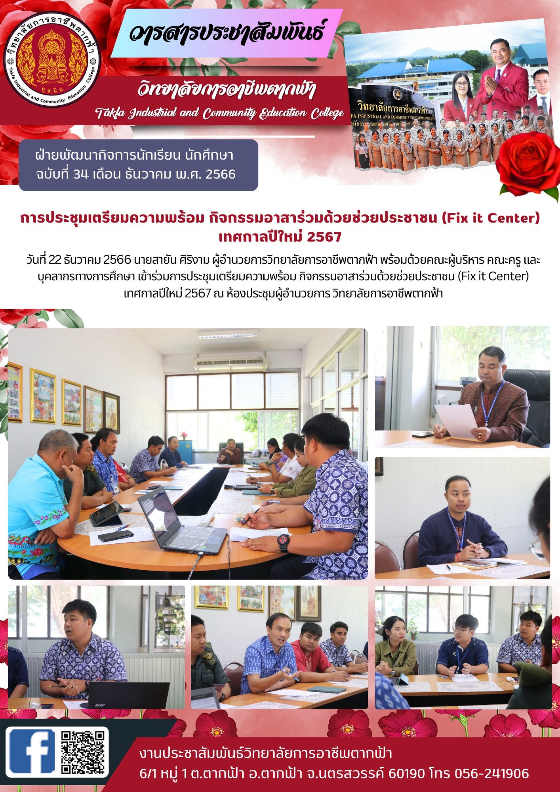 วารสารตากฟ้าประจำเดือนธันวาคม 2566 ฉบับที่ 34 การประชุมเตรียมความพร้อม กิจกรรมอาสาร่วมด้วยช่วยประชาชน (Fix it Center) เทศกาลปีใหม่ 2567