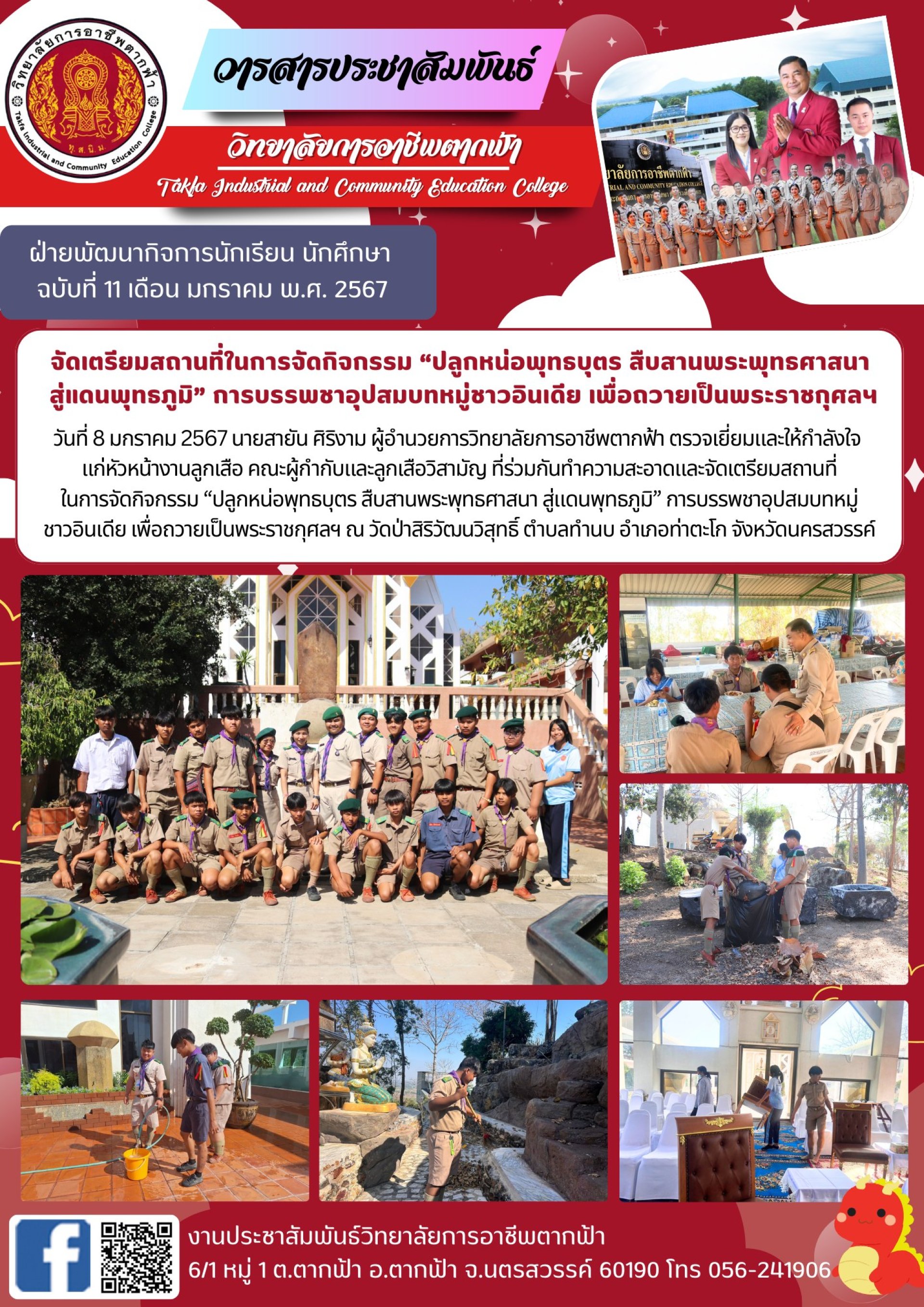 วารสารตากฟ้า ประจำเดือน มกราคม 2567 ฉบับที่ 11 จัดเตรียมสถานที่ในการจัดกิจกรรม ปลูกหน่อพุทธบุตร สืบสานพระพุทธศาสนา สู่แดนพุทธภูมิ การบรรพชาอุปสมบทหมู่ชาวอินเดีย เพื่อถวายเป็นพระราชกุศลฯ