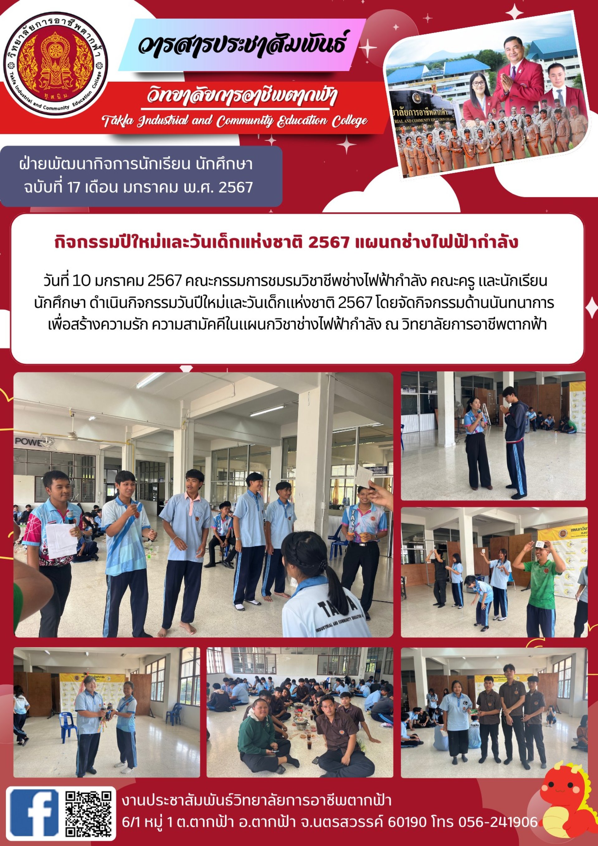 วารสารตากฟ้า ประจำเดือน มกราคม 2567 ฉบับที่ 17 กิจกรรมปีใหม่และวันเด็กแห่งชาติ 2567 แผนกช่างไฟฟ้ากำลัง