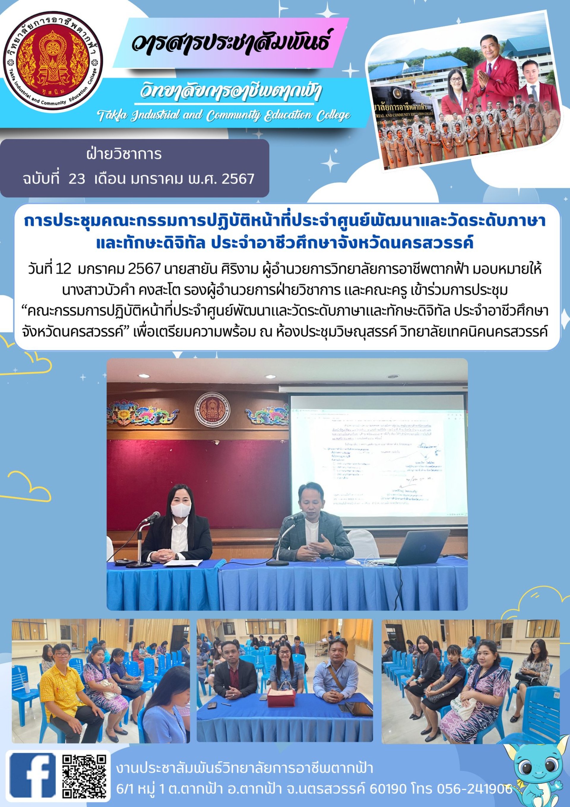 วารสารตากฟ้า ประจำเดือน มกราคม 2567 ฉบับที่ 23 การประชุมคณะกรรมการปฏิบัติหน้าที่ประจำศูนย์พัฒนาและวัดระดับภาษาและทักษะดิจิทัล ประจำอาชีวศึกษาจังหวัดนครสวรรค์