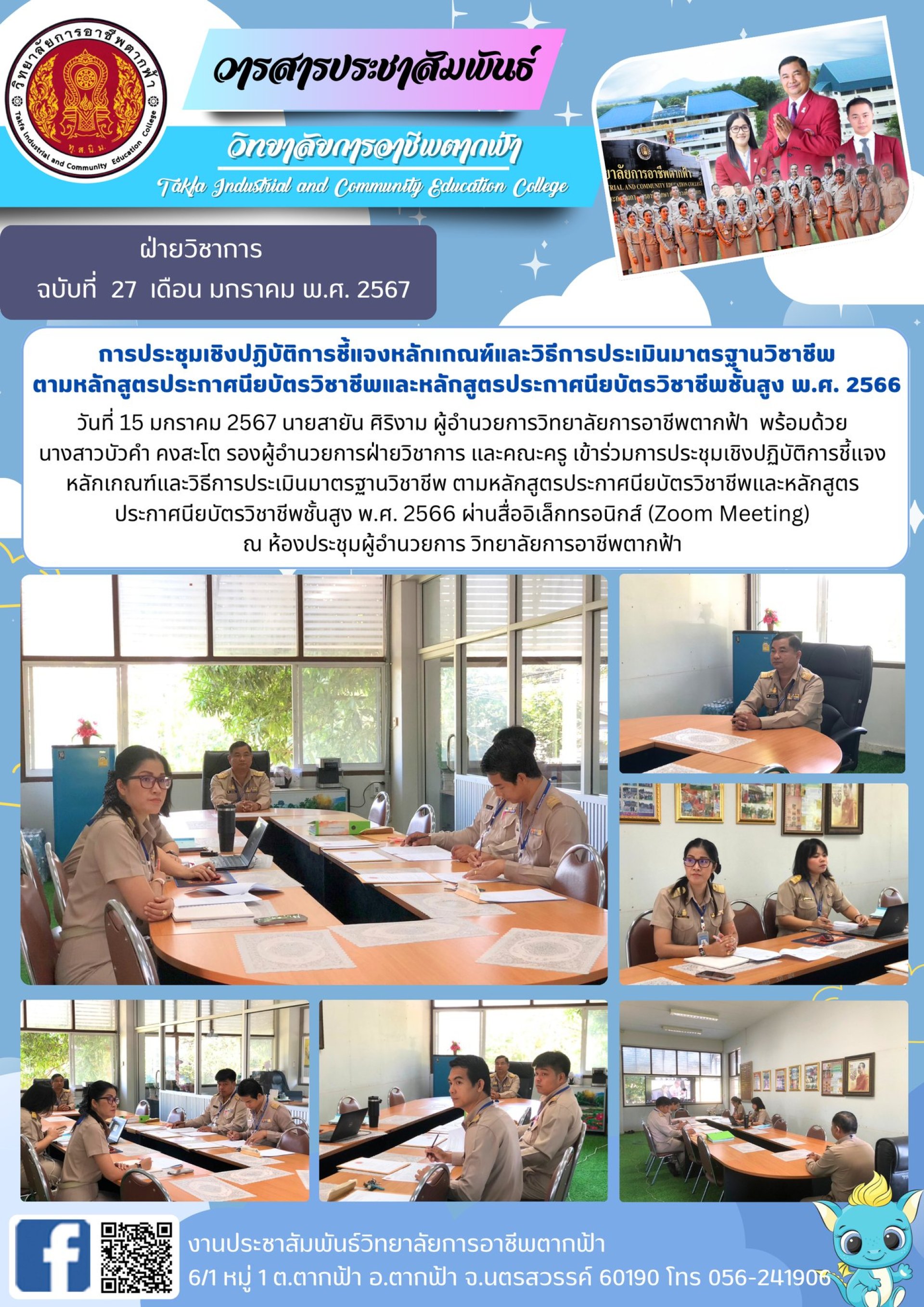 วารสารตากฟ้า ประจำเดือน มกราคม 2567 ฉบับที่ 27 การประชุมเชิงปฏิบัติการชี้แจงหลักเกณฑ์และวิธีการประเมินมาตรฐานวิชาชีพ ตามหลักสูตรประกาศนียบัตรวิชาชีพและหลักสูตรประกาศนียบัตรวิชาชีพชั้นสูง พ.ศ. 2566