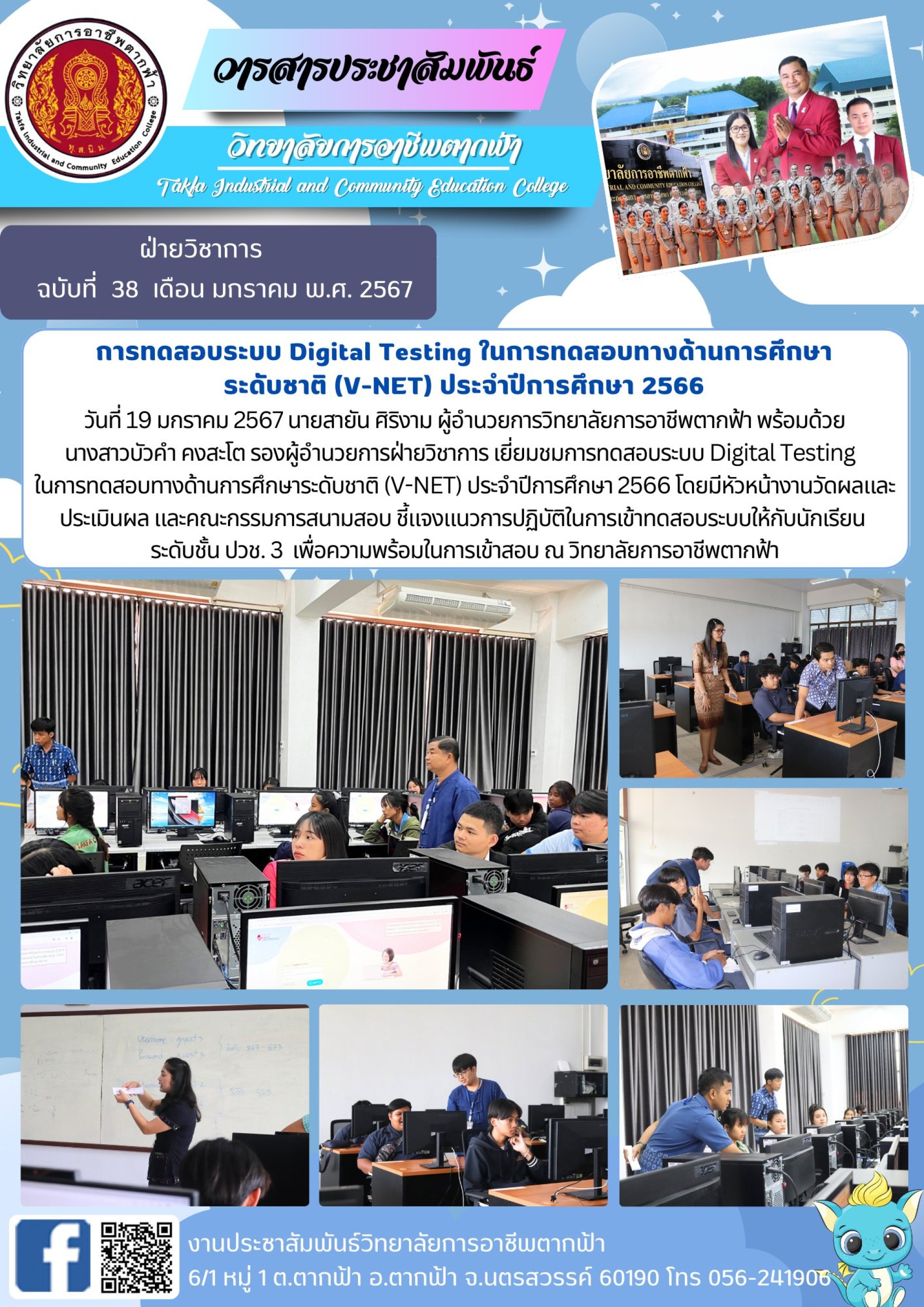 วารสารตากฟ้า ประจำเดือน มกราคม 2567 ฉบับที่ 38 การทดสอบระบบ Digital Testing ในการทดสอบทางด้านการศึกษาระดับชาติ (V-NET) ประจำปีการศึกษา 2566