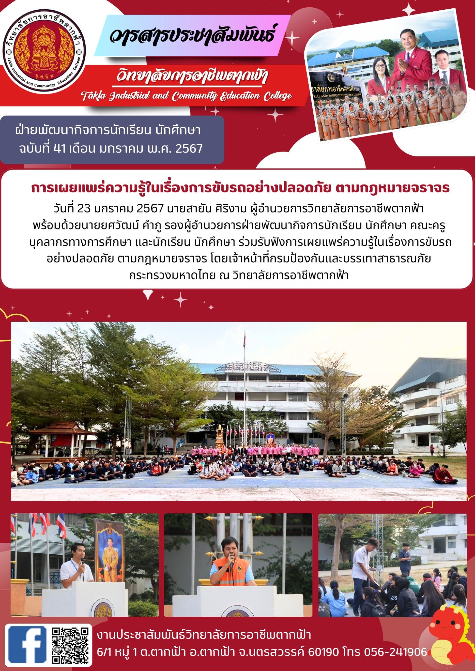 วารสารตากฟ้า ประจำเดือน มกราคม 2567 ฉบับที่ 41 การเผยแพร่ความรู้ในเรื่องการขับรถอย่างปลอดภัย ตามกฎหมายจราจร