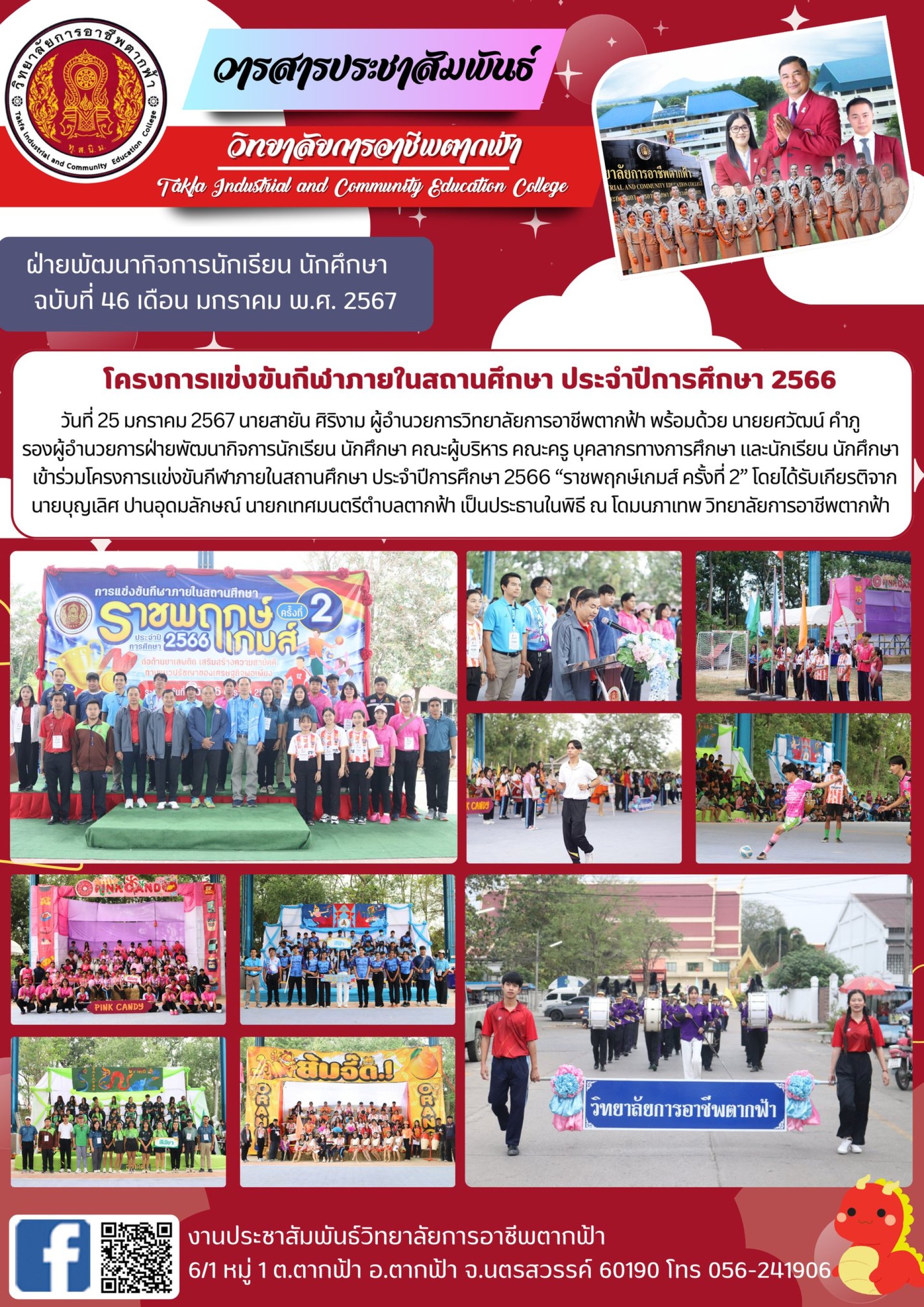 วารสารตากฟ้า ประจำเดือน มกราคม 2567 ฉบับที่ 46 โครงการแข่งขันกีฬาภายในสถานศึกษา ประจำปีการศึกษา 2566