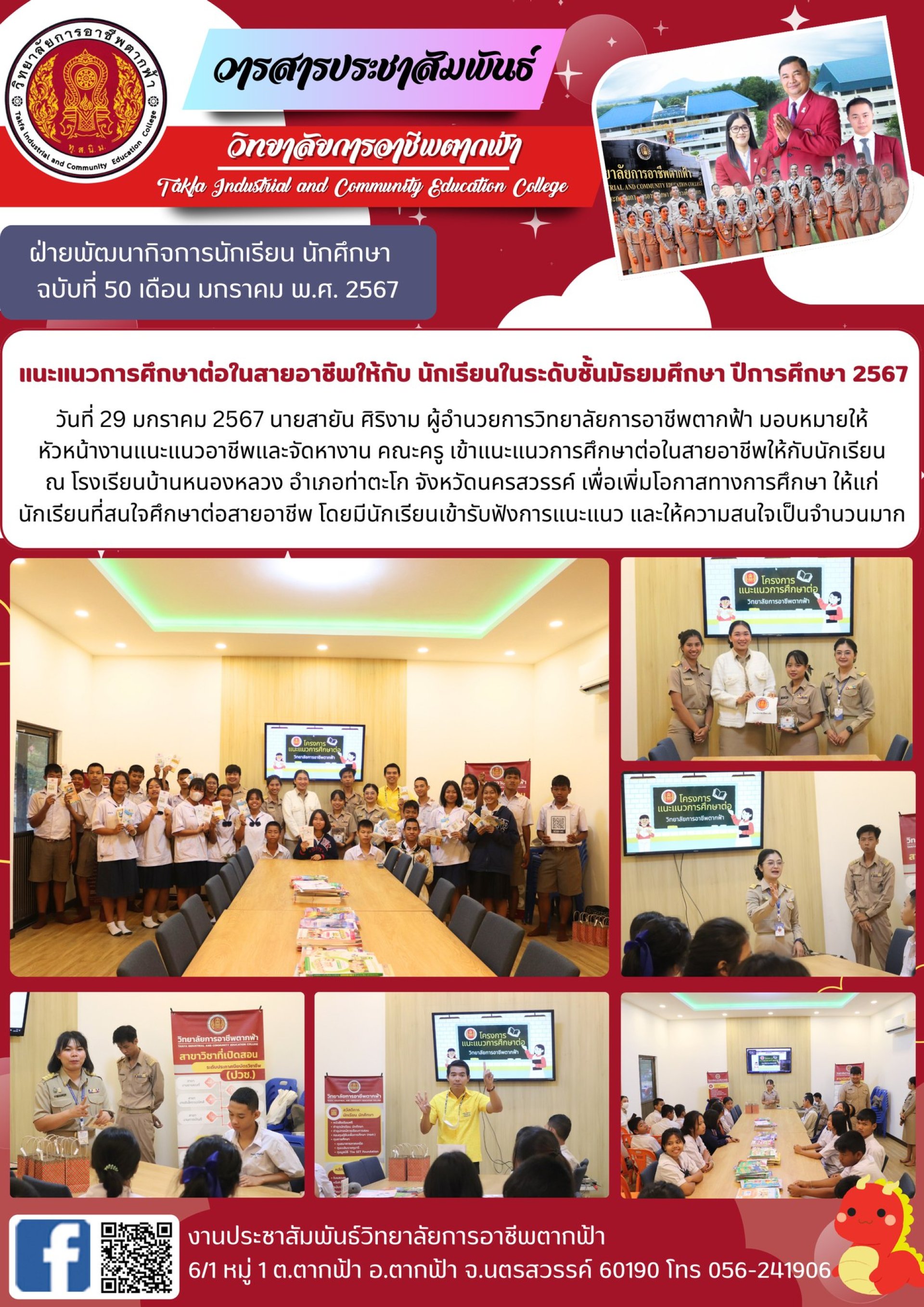 วารสารตากฟ้า ประจำเดือน มกราคม 2567 ฉบับที่ 50 แนะแนวการศึกษาต่อในสายอาชีพให้กับ นักเรียนในระดับชั้นมัธยมศึกษา ปีการศึกษา 2567