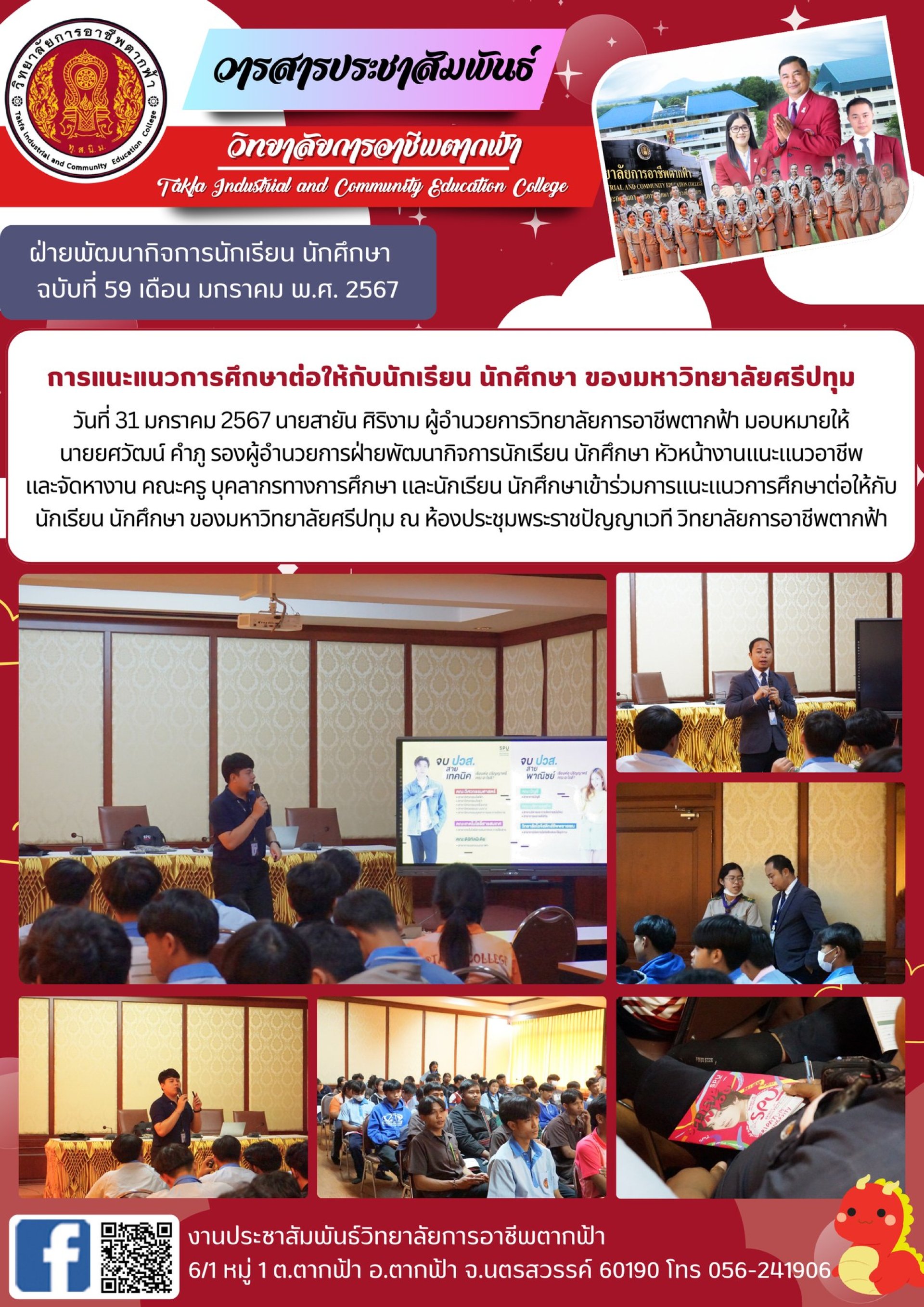 วารสารตากฟ้า ประจำเดือน มกราคม 2567 ฉบับที่ 59 การแนะแนวการศึกษาต่อให้กับนักเรียน นักศึกษา ของมหาวิทยาลัยศรีปทุม
