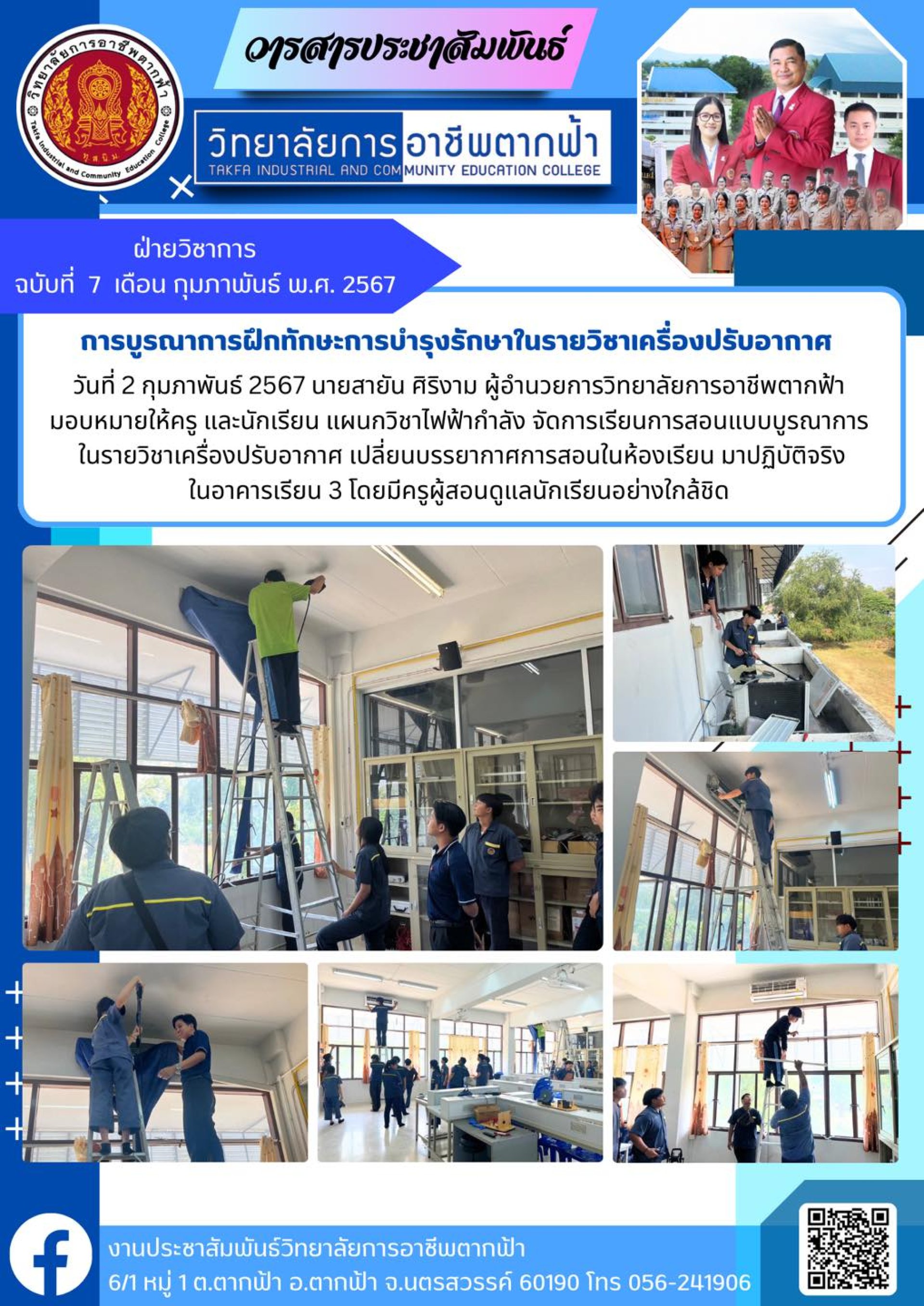 วารสารตากฟ้า ประจำเดือน กุมภาพันธ์ 2567 ฉบับที่ 7 การบูรณาการการฝึกทักษะการบำรุงรักษาในรายวิชาเครื่องปรับอากาศ