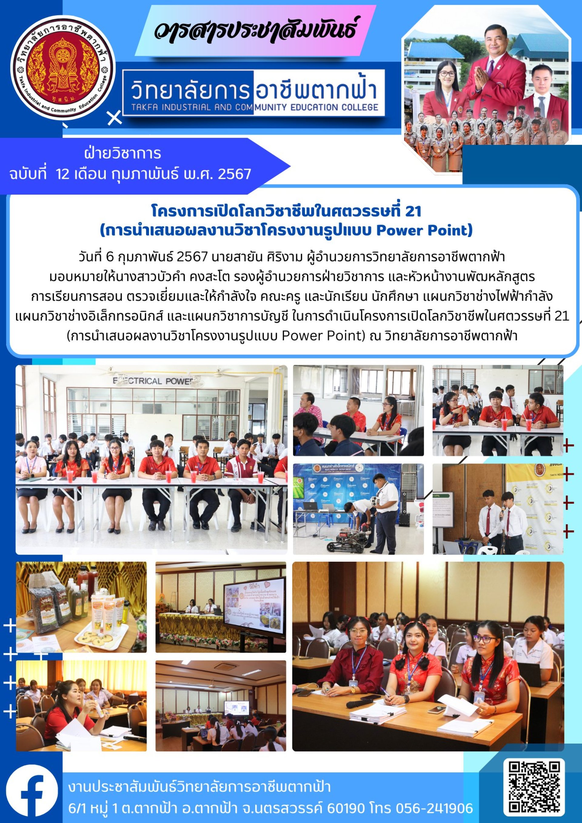 วารสารตากฟ้า ประจำเดือน กุมภาพันธ์ 2567 ฉบับที่ 12 โครงการเปิดโลกวิชาชีพในศตวรรษที่ 21 (การนำเสนอผลงานวิชาโครงงานรูปแบบ Power Point)