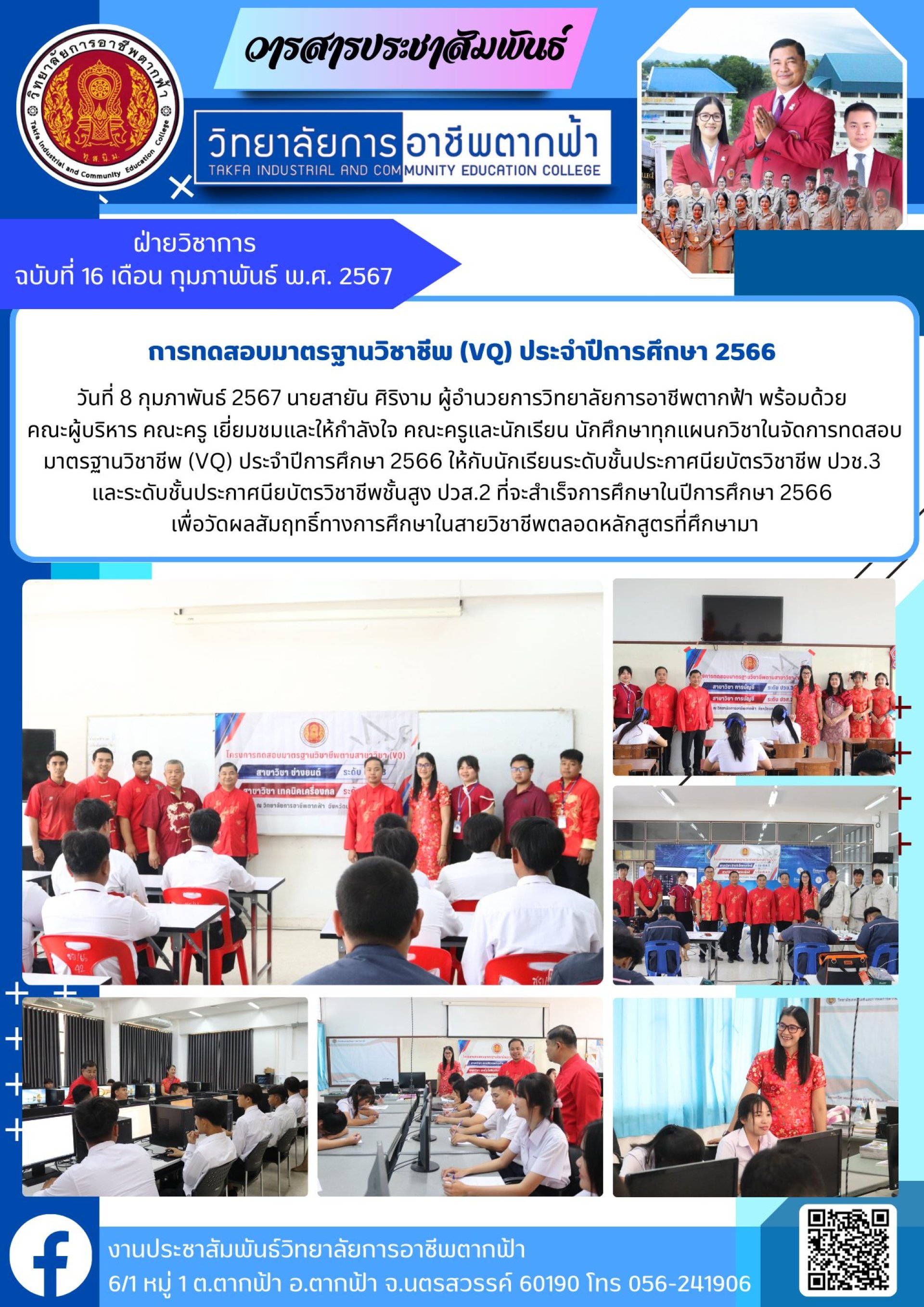วารสารตากฟ้า ประจำเดือน กุมภาพันธ์ 2567 ฉบับที่ 16 การทดสอบมาตรฐานวิชาชีพ (VQ) ประจำปีการศึกษา 2566