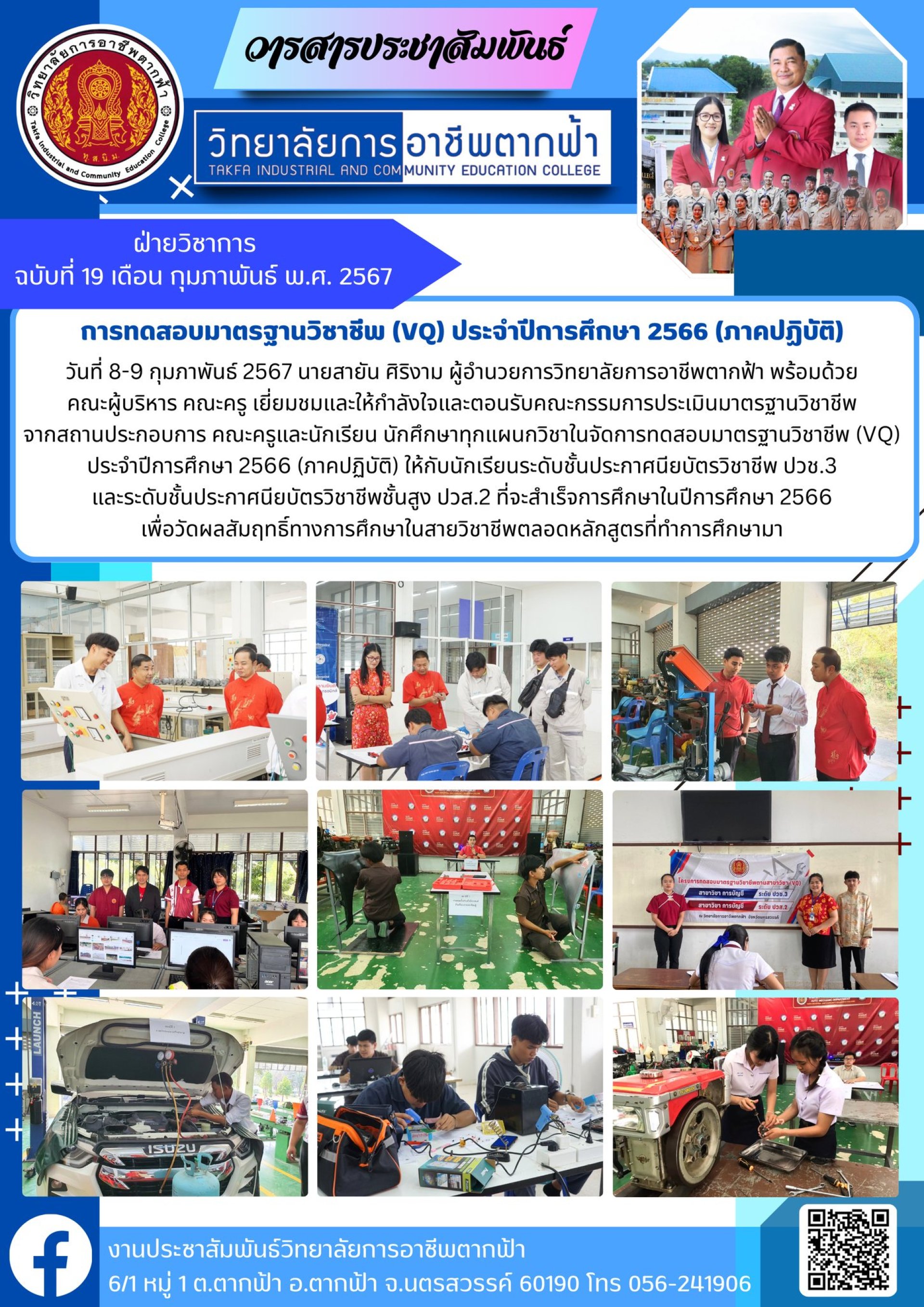 วารสารตากฟ้า ประจำเดือน กุมภาพันธ์ 2567 ฉบับที่ 19 การทดสอบมาตรฐานวิชาชีพ (VQ) ประจำปีการศึกษา 2566 (ภาคปฏิบัติ)