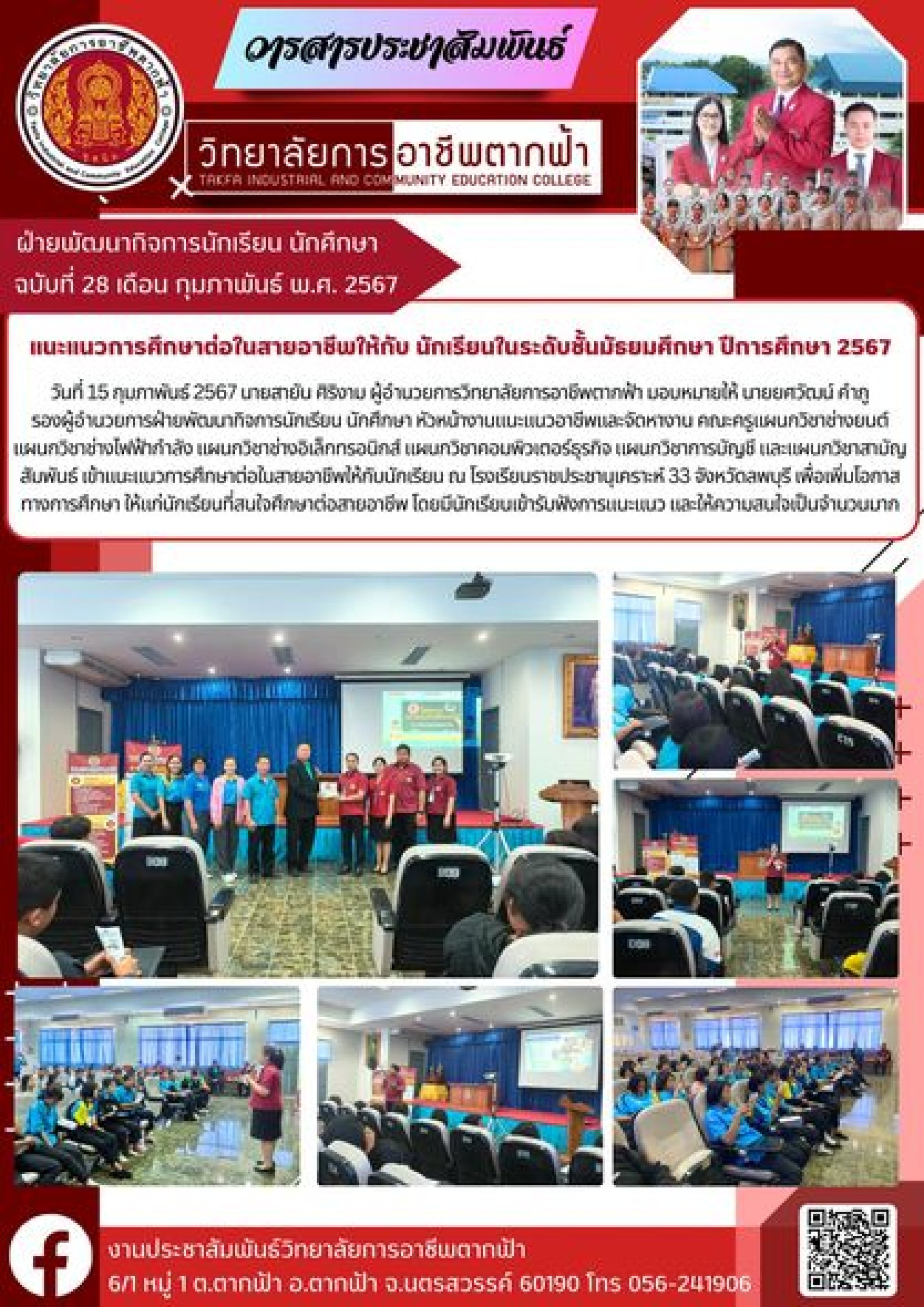 วารสารตากฟ้า ประจำเดือน กุมภาพันธ์ 2567 ฉบับที่ 28 แนะแนวการศึกษาต่อในสายอาชีพให้กับ นักเรียนในระดับชั้นมัธยมศึกษา ปีการศึกษา 2567