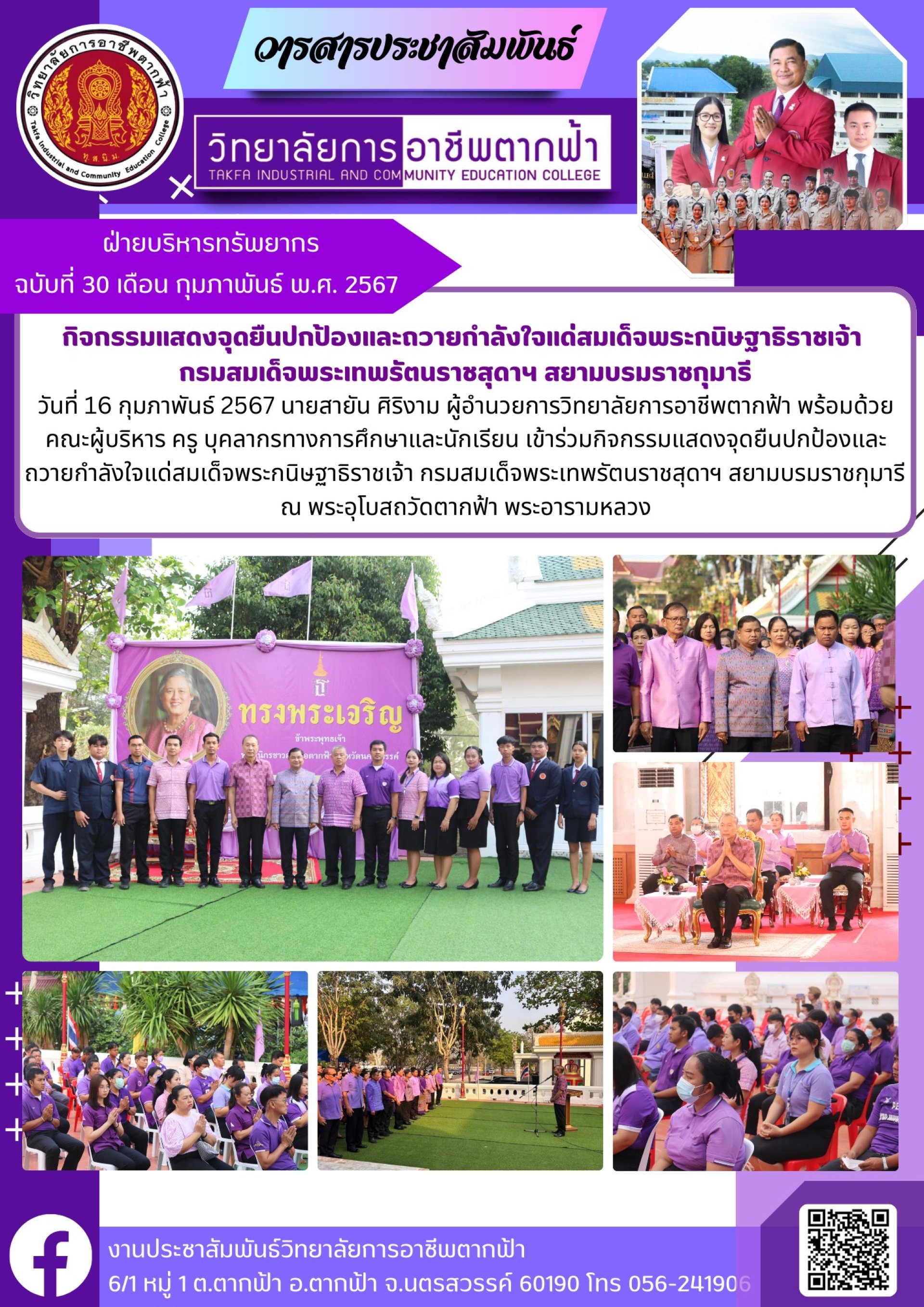 วารสารตากฟ้า ประจำเดือน กุมภาพันธ์ 2567 ฉบับที่ 30 กิจกรรมแสดงจุดยืนปกป้องและถวายกำลังใจแด่สมเด็จพระกนิษฐาธิราชเจ้า กรมสมเด็จพระเทพรัตนราชสุดาฯ สยามบรมราชกุมารี