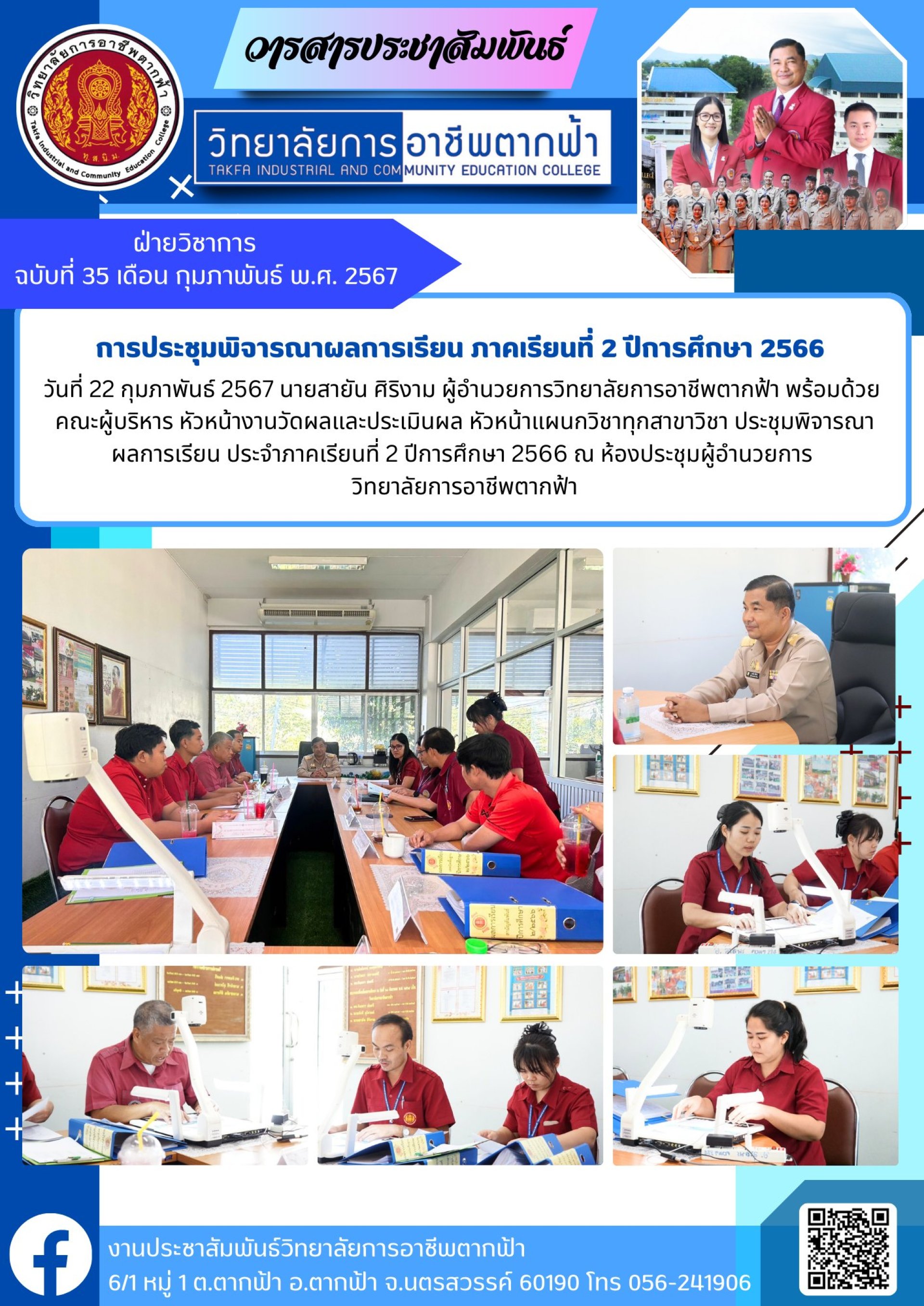 วารสารตากฟ้า ประจำเดือน กุมภาพันธ์ 2567 ฉบับที่ 35 การประชุมพิจารณาผลการเรียน ภาคเรียนที่ 2 ปีการศึกษา 2566