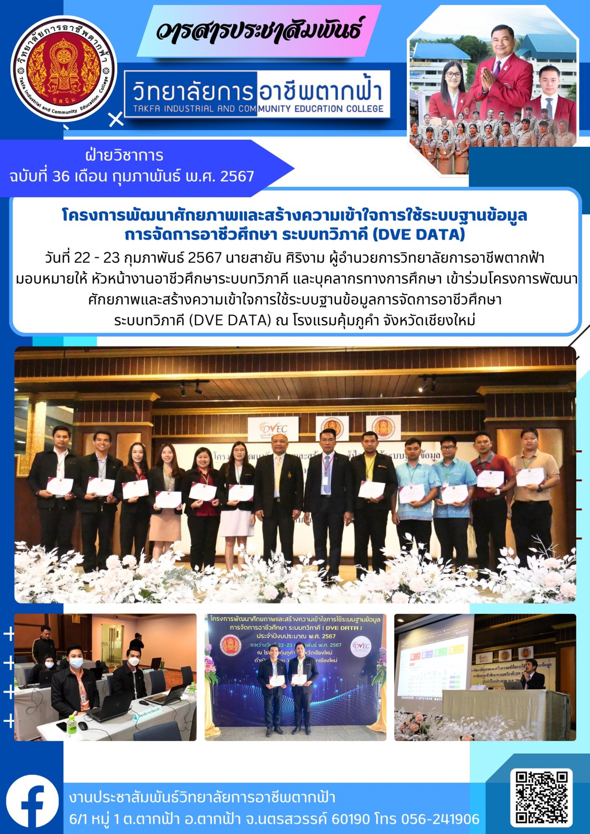 วารสารตากฟ้า ประจำเดือน กุมภาพันธ์ 2567 ฉบับที่ 36 โครงการพัฒนาศักยภาพและสร้างความเข้าใจการใช้ระบบฐานข้อมูลการจัดการอาชีวศึกษา ระบบทวิภาคี (DVE DATA)