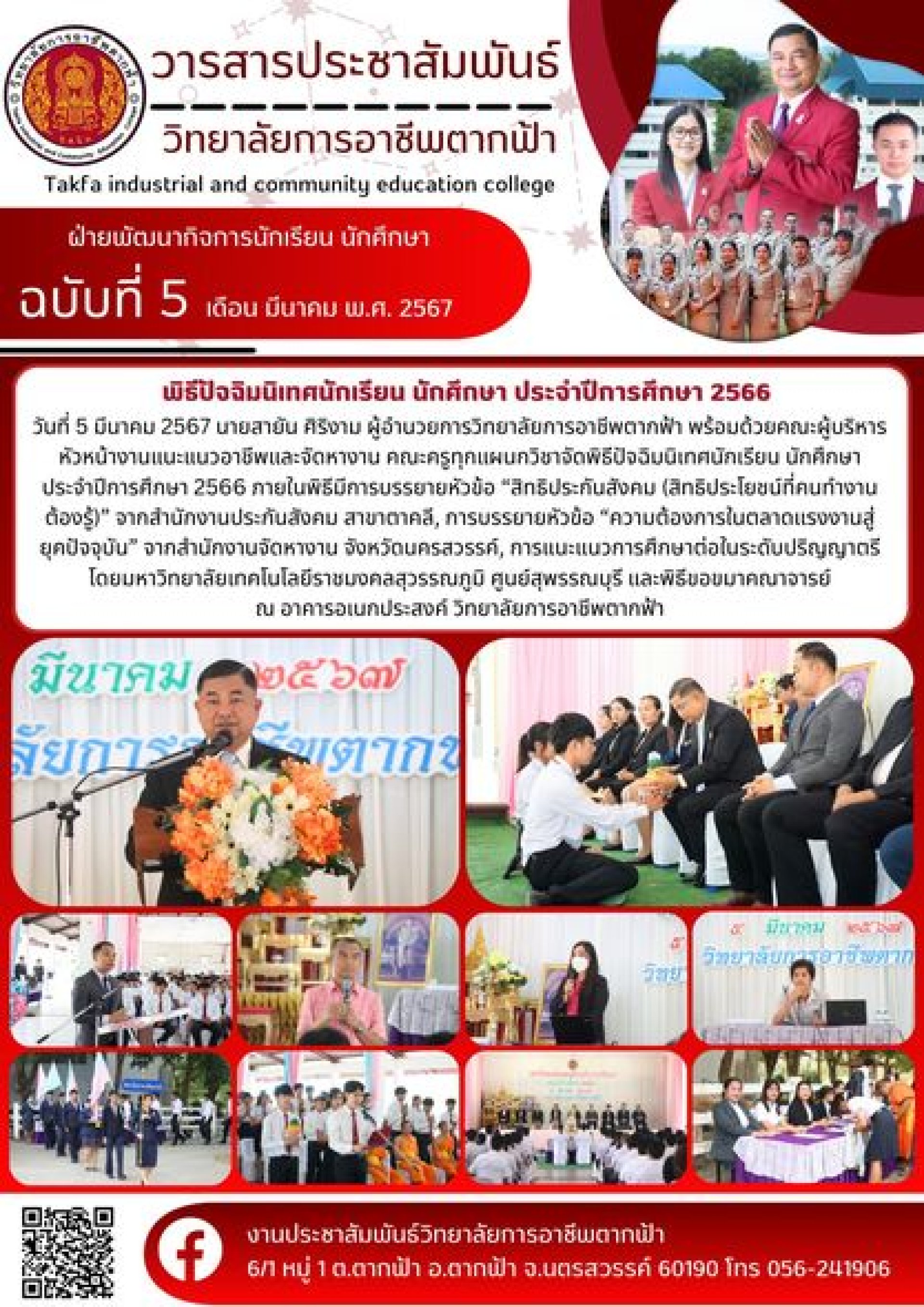 วารสารตากฟ้า ประจำเดือน มีนาคม 2567 ฉบับที่ 5 พิธีปัจฉิมนิเทศนักเรียน นักศึกษา ประจำปีการศึกษา 2566