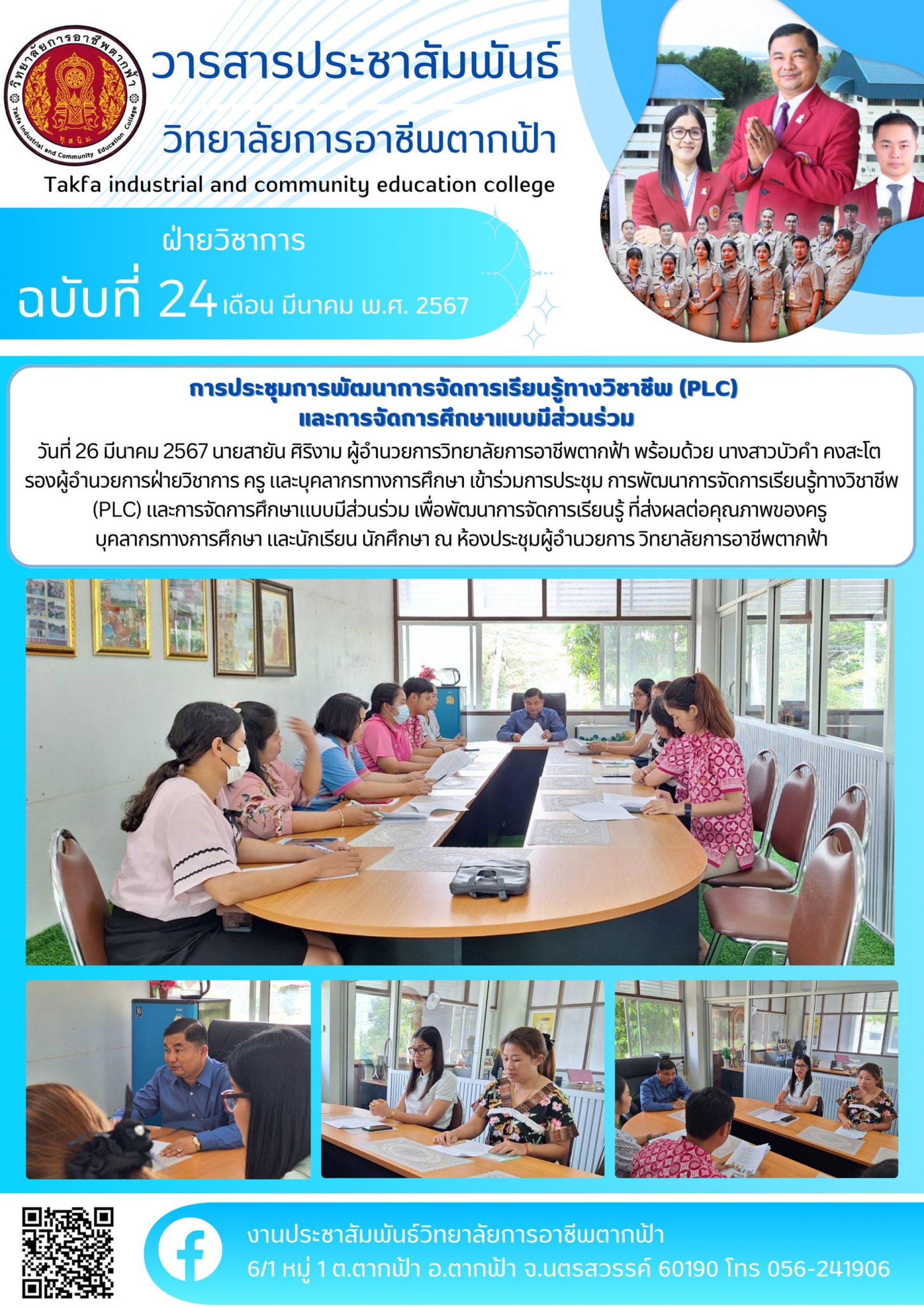 วารสารตากฟ้า ประจำเดือน มีนาคม 2567 ฉบับที่ 24 การประชุมการพัฒนาการจัดการเรียนรู้ทางวิชาชีพ (PLC) และการจัดการศึกษาแบบมีส่วนร่วม