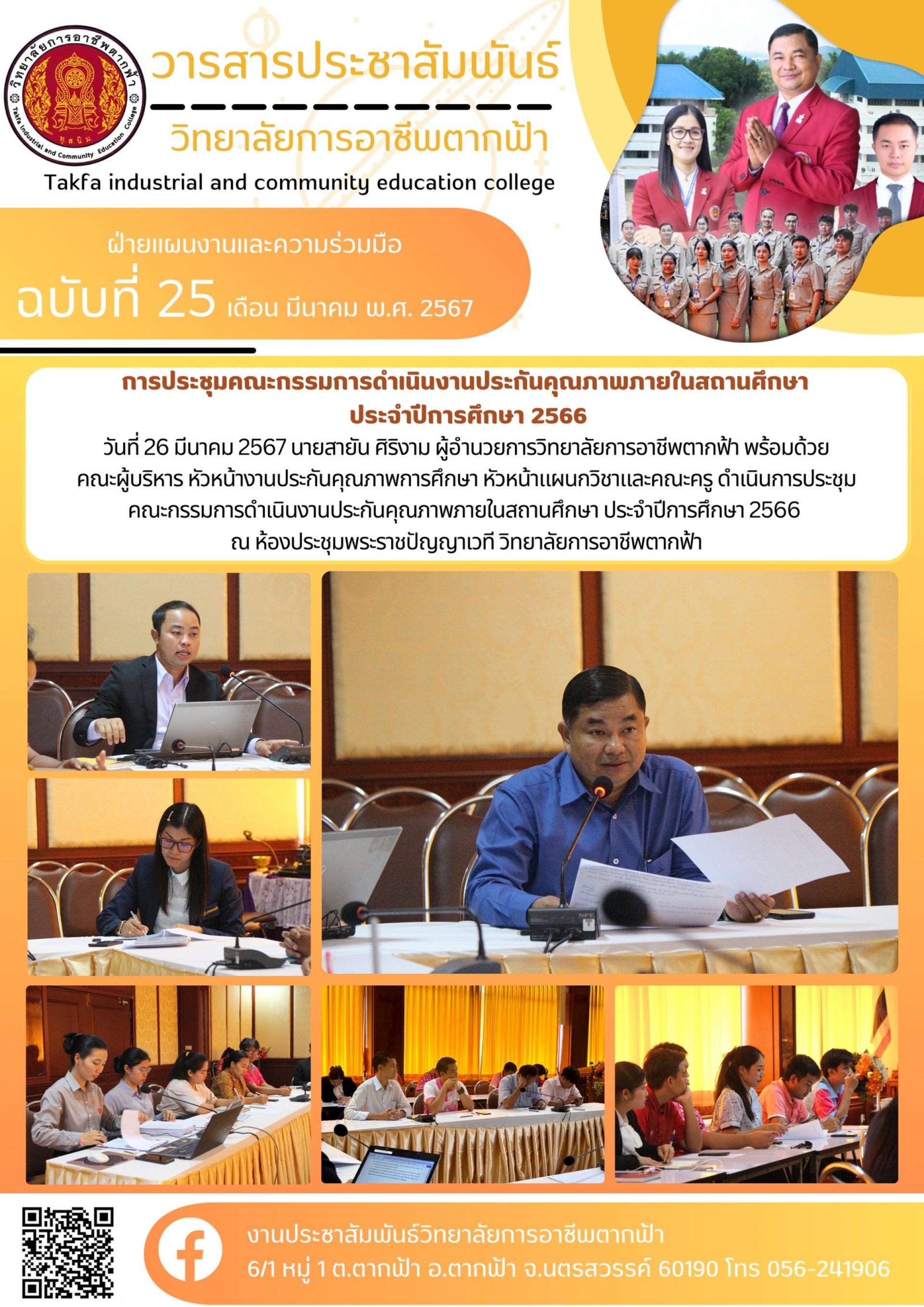วารสารตากฟ้า ประจำเดือน มีนาคม 2567 ฉบับที่ 25 การประชุมคณะกรรมการดำเนินงานประกันคุณภาพภายในสถานศึกษา ประจำปีการศึกษา 2566