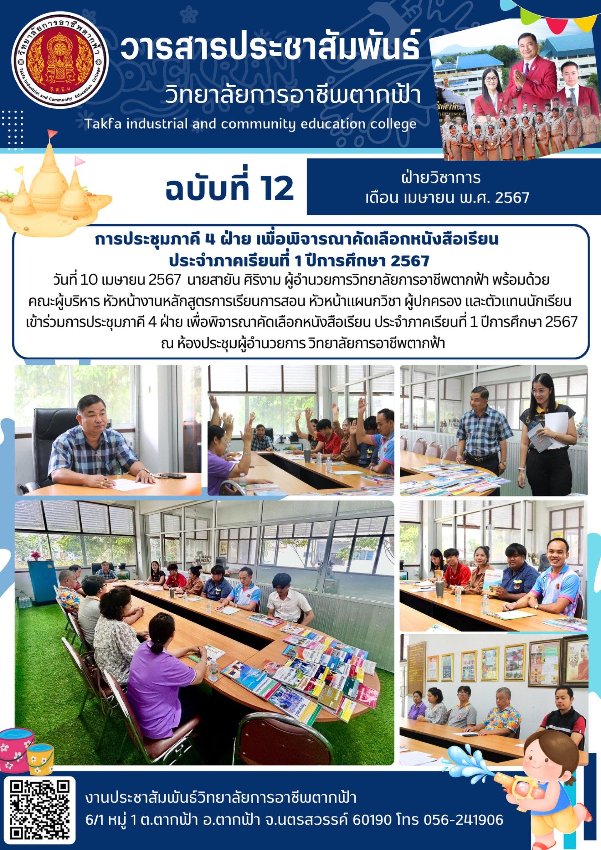 วารสารตากฟ้า ประจำเดือน เมษายน 2567 ฉบับที่ 12 การประชุมภาคี 4 ฝ่าย เพื่อพิจารณาคัดเลือกหนังสือเรียน ประจำภาคเรียนที่ 1 ปีการศึกษา 2567
