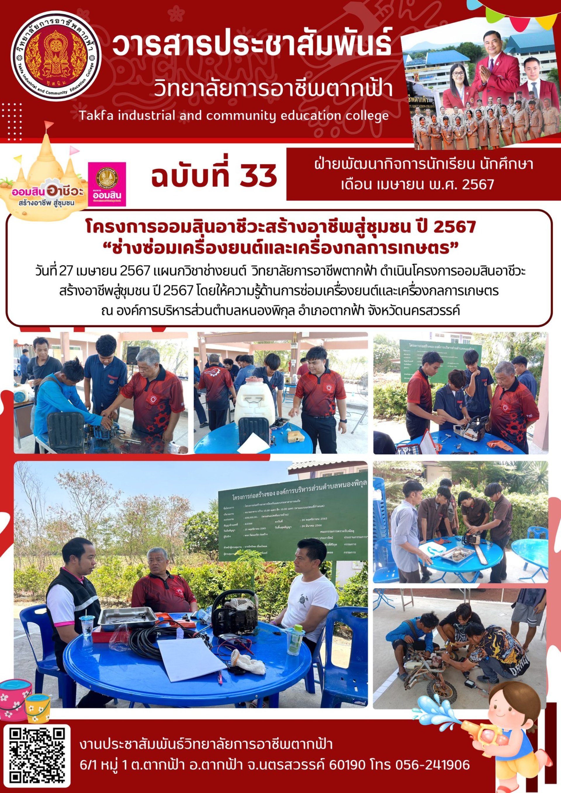 วารสารตากฟ้า ประจำเดือน เมษายน 2567 ฉบับที่ 33 โครงการออมสินอาชีวะสร้างอาชีพสู่ชุมชน ปี 2567 ช่างซ่อมเครื่องยนต์และเครื่องกลการเกษตร