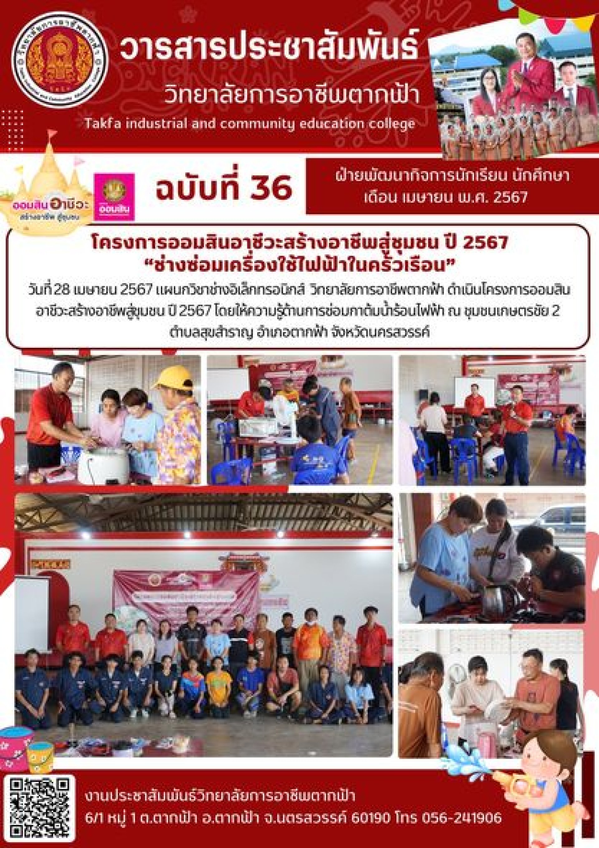 วารสารตากฟ้า ประจำเดือน เมษายน 2567 ฉบับที่ 36 โครงการออมสินอาชีวะสร้างอาชีพสู่ชุมชน ปี 2567 ช่างซ่อมเครื่องใช้ไฟฟ้าในครัวเรือน