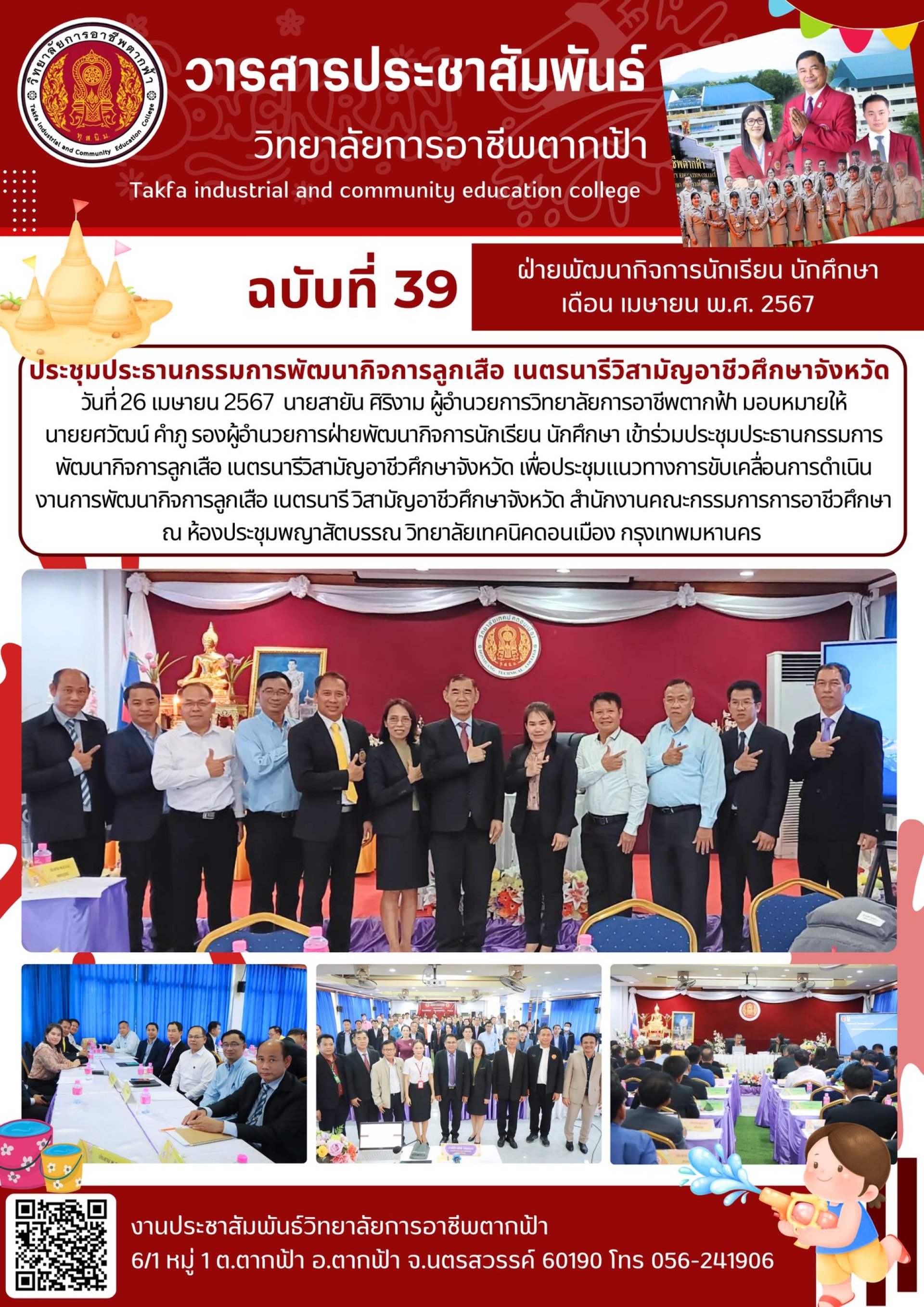 วารสารตากฟ้า ประจำเดือน เมษายน 2567 ฉบับที่ 39 ประชุมประธานกรรมการพัฒนากิจการลูกเสือ เนตรนารีวิสามัญอาชีวศึกษาจังหวัด