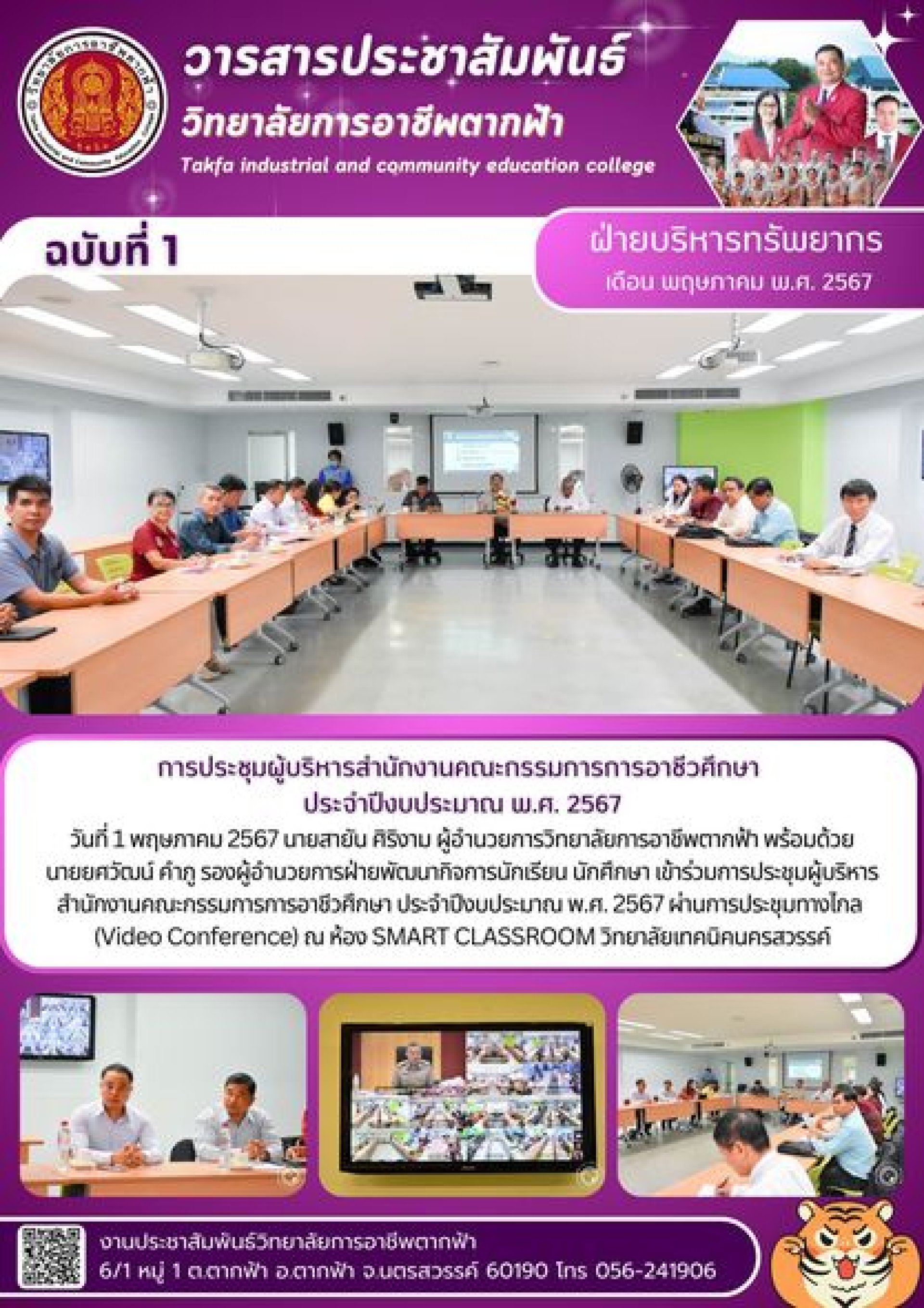 วารสารตากฟ้า ประจำเดือน พฤษภาคม 2567 ฉบับที่ 1 การประชุมผู้บริหารสำนักงานคณะกรรมการการอาชีวศึกษา ประจำปีงบประมาณ พ.ศ. 2567