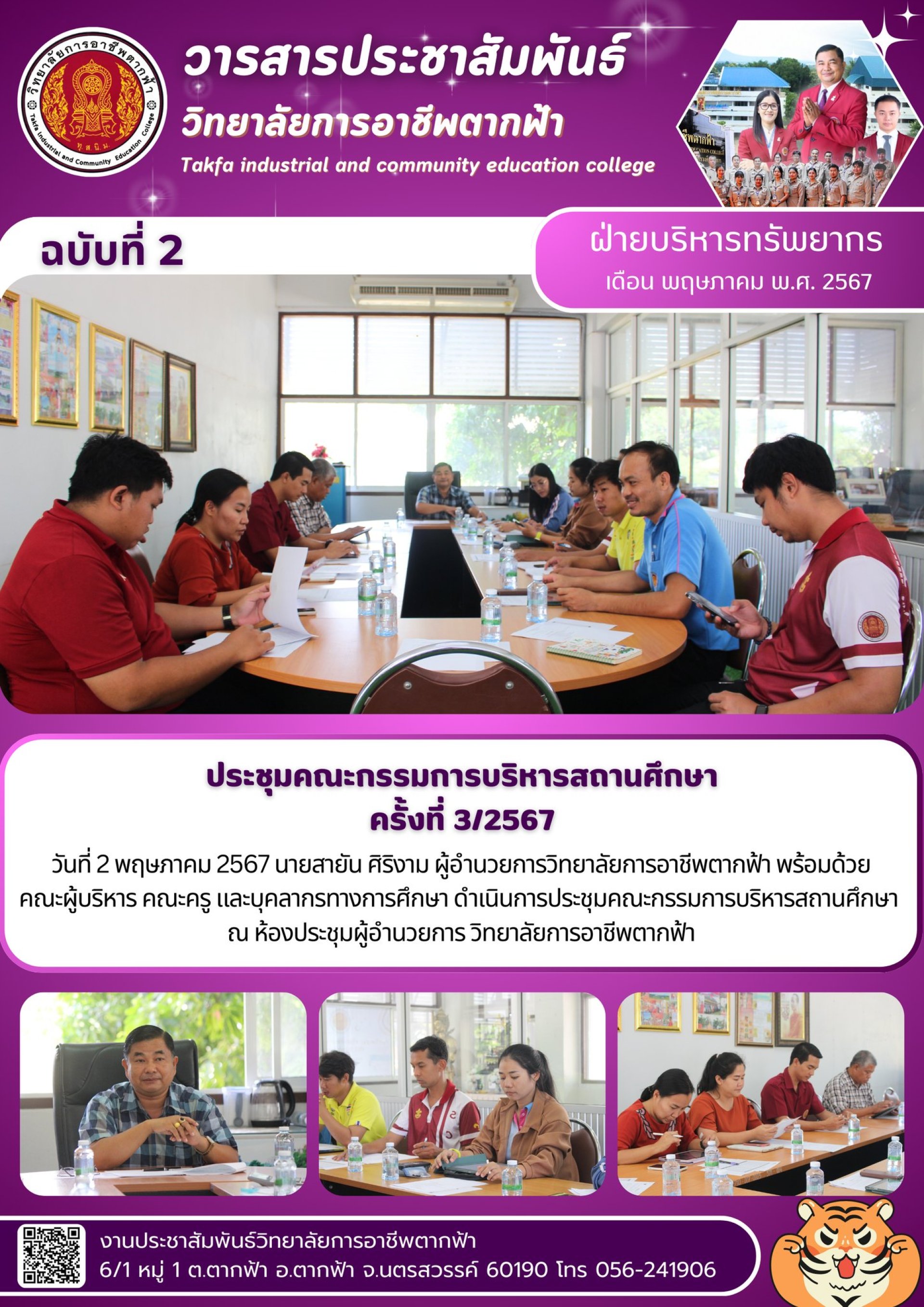 วารสารตากฟ้า ประจำเดือน พฤษภาคม 2567 ฉบับที่ 2 ประชุมคณะกรรมการบริหารสถานศึกษา ครั้งที่ 3/2567