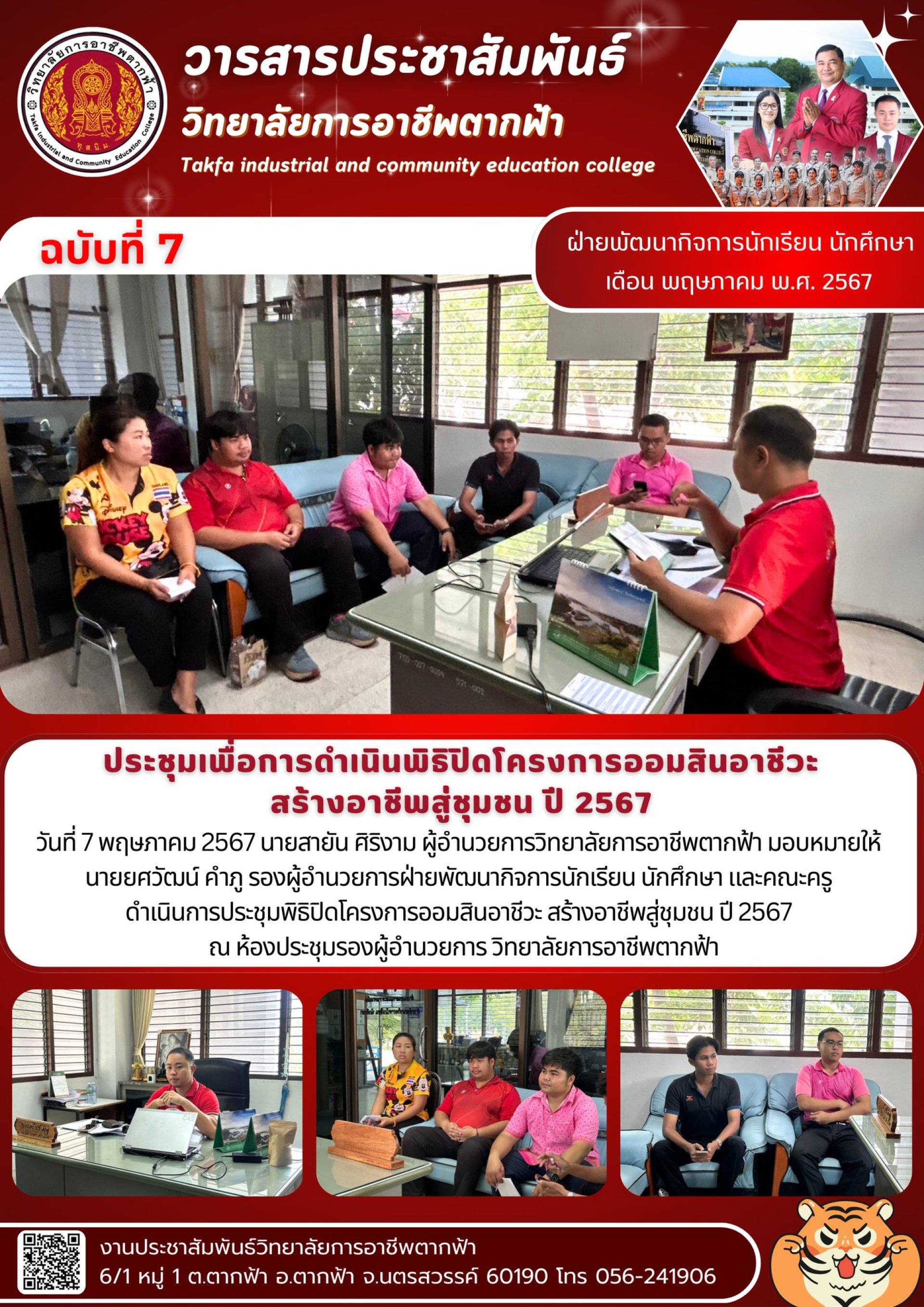 วารสารตากฟ้า ประจำเดือน พฤษภาคม 2567 ฉบับที่ 7 ประชุมเพื่อการดำเนินพิธิปิดโครงการออมสินอาชีวะ สร้างอาชีพสู่ชุมชน ปี 2567