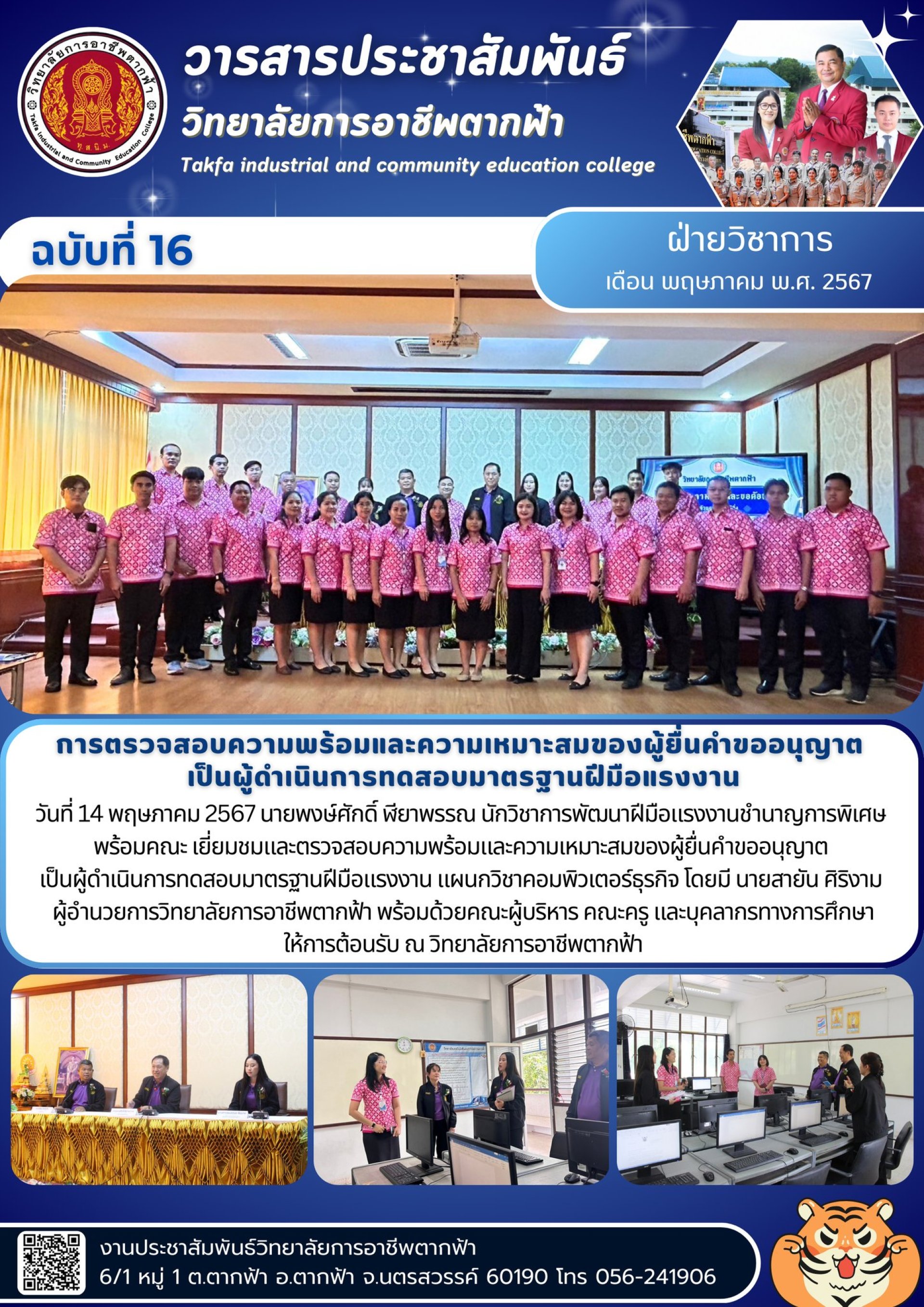 วารสารตากฟ้า ประจำเดือน พฤษภาคม 2567 ฉบับที่ 16 การตรวจสอบความพร้อมและความเหมาะสมของผู้ยื่นคำขออนุญาต เป็นผู้ดำเนินการทดสอบมาตรฐานฝีมือแรงงาน