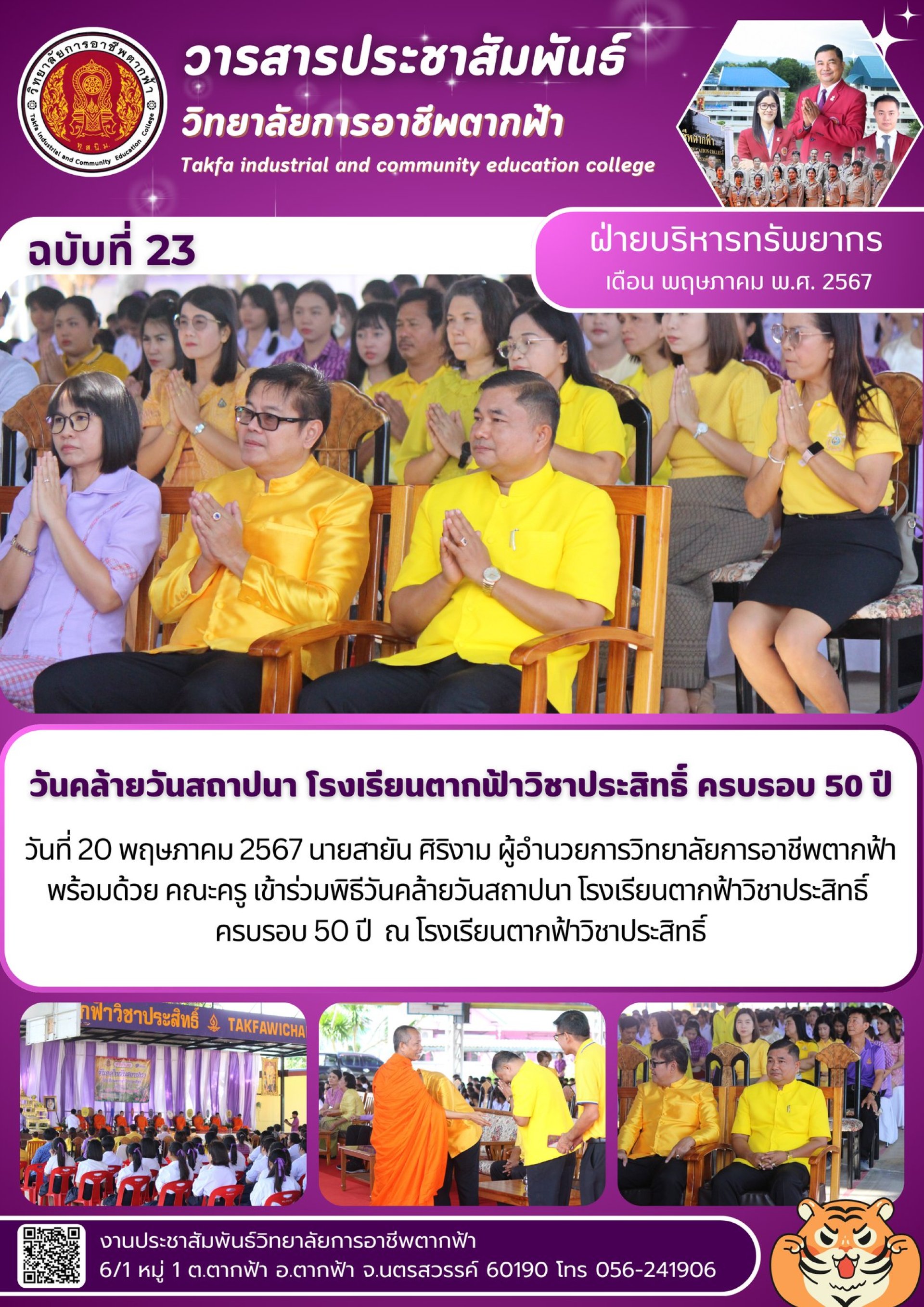วารสารตากฟ้า ประจำเดือน พฤษภาคม 2567 ฉบับที่ 23 วันคล้ายวันสถาปนา โรงเรียนตากฟ้าวิชาประสิทธิ์ ครบรอบ 50 ปี