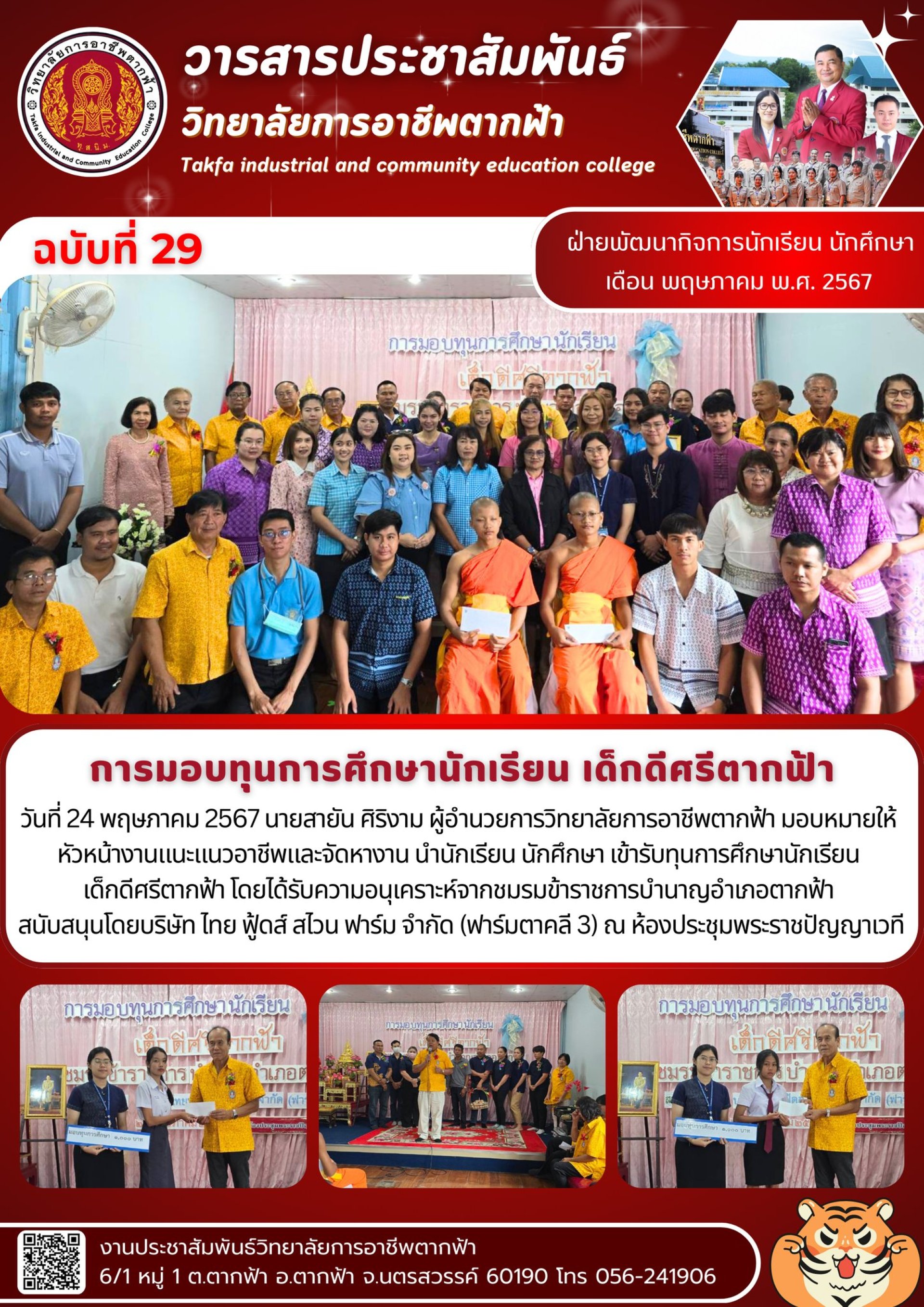 วารสารตากฟ้า ประจำเดือน พฤษภาคม 2567 ฉบับที่ 29 การมอบทุนการศึกษานักเรียน เด็กดีศรีตากฟ้า
