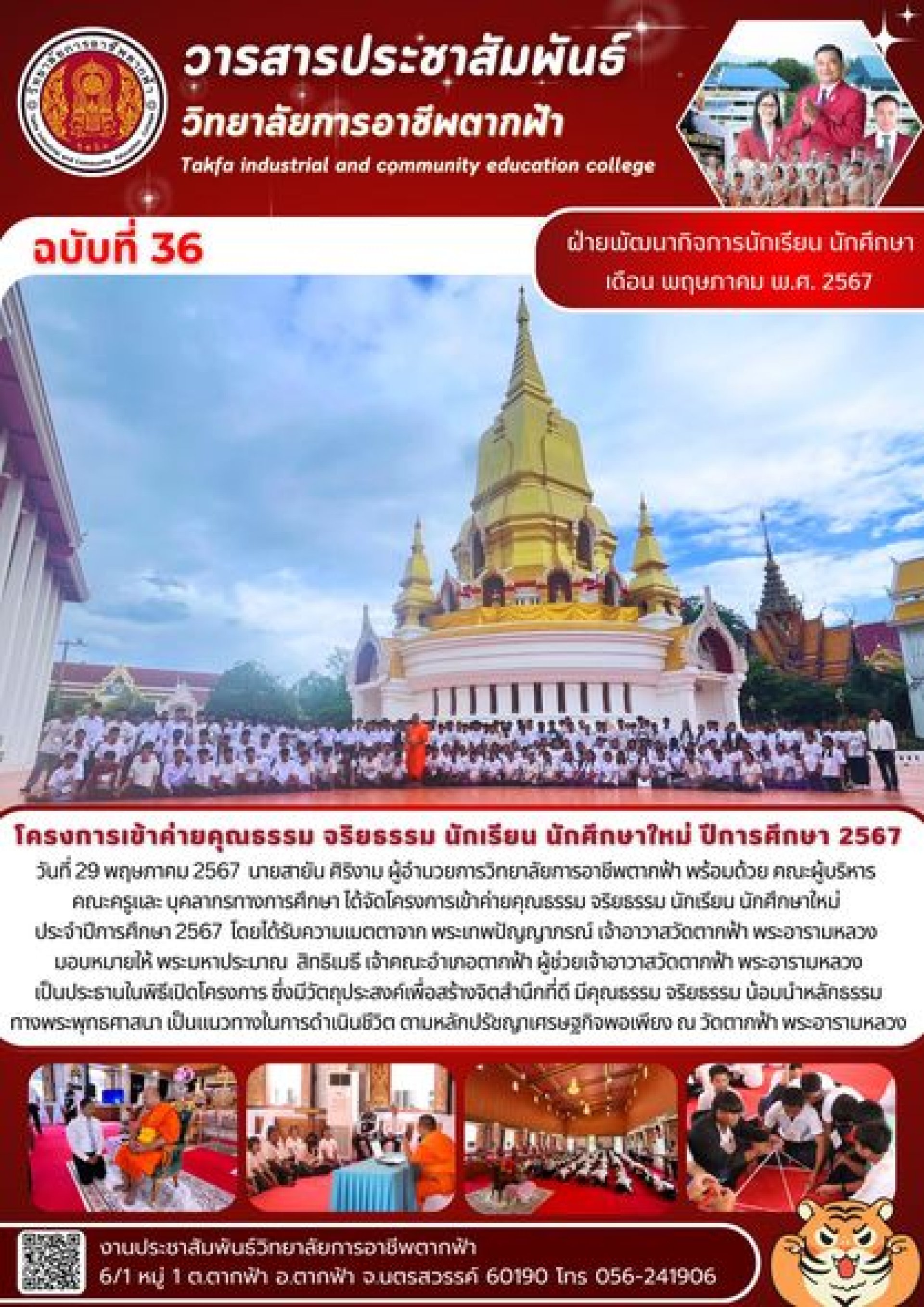 วารสารตากฟ้า ประจำเดือน พฤษภาคม 2567 ฉบับที่ 36 โครงการเข้าค่ายคุณธรรม จริยธรรม นักเรียน นักศึกษาใหม่ ปีการศึกษา 2567