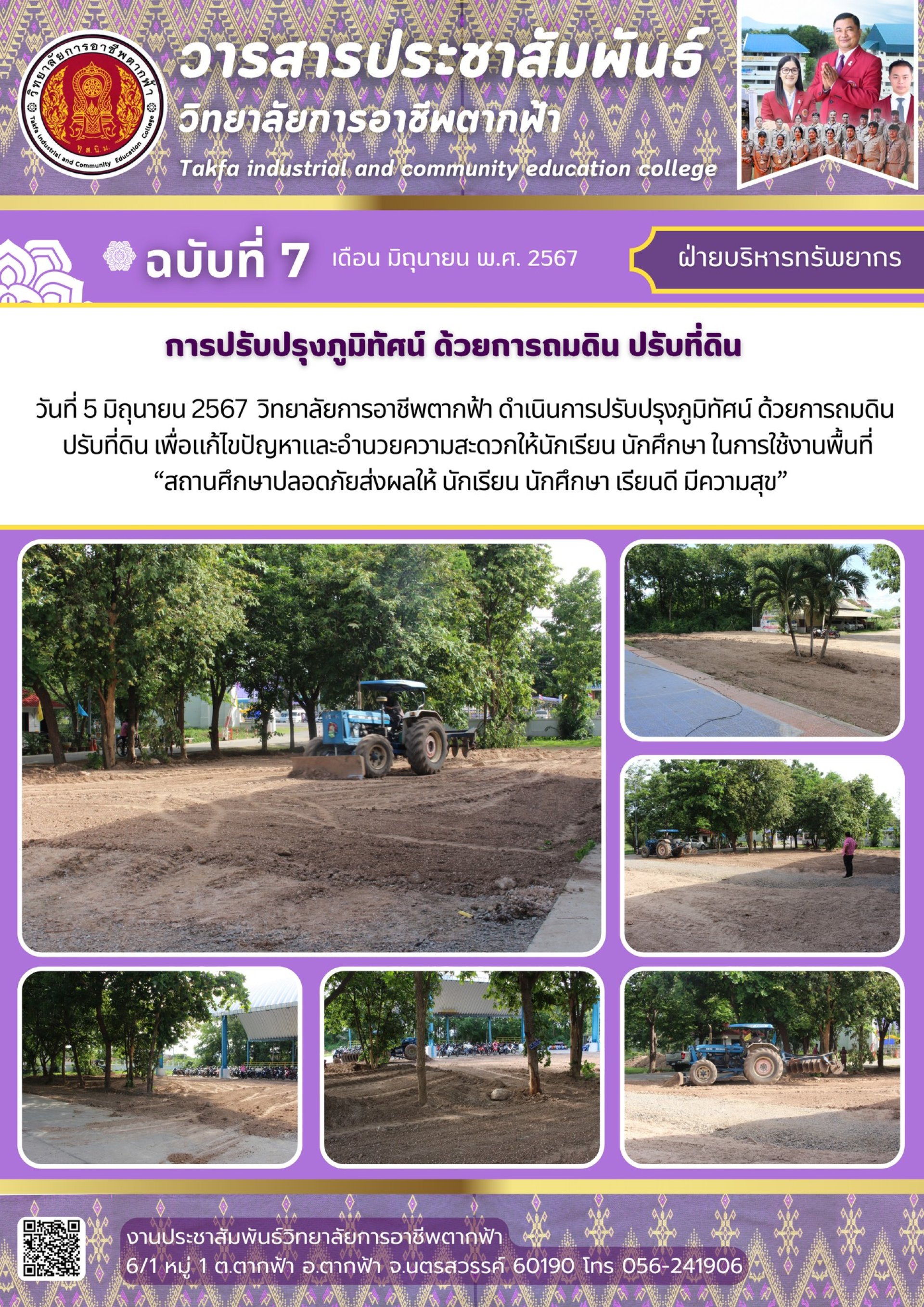 วารสารตากฟ้า ประจำเดือน มิถุนายน 2567 ฉบับที่ 7 การปรับปรุงภูมิทัศน์ ด้วยการถมดิน ปรับที่ดิน